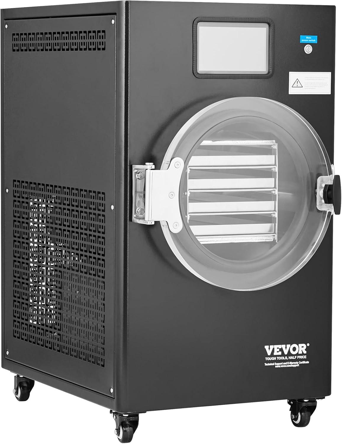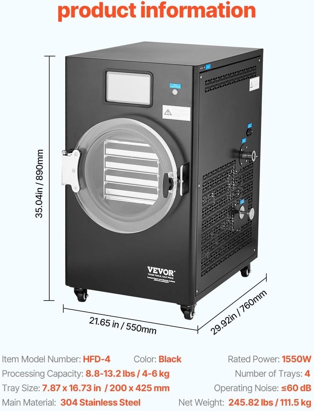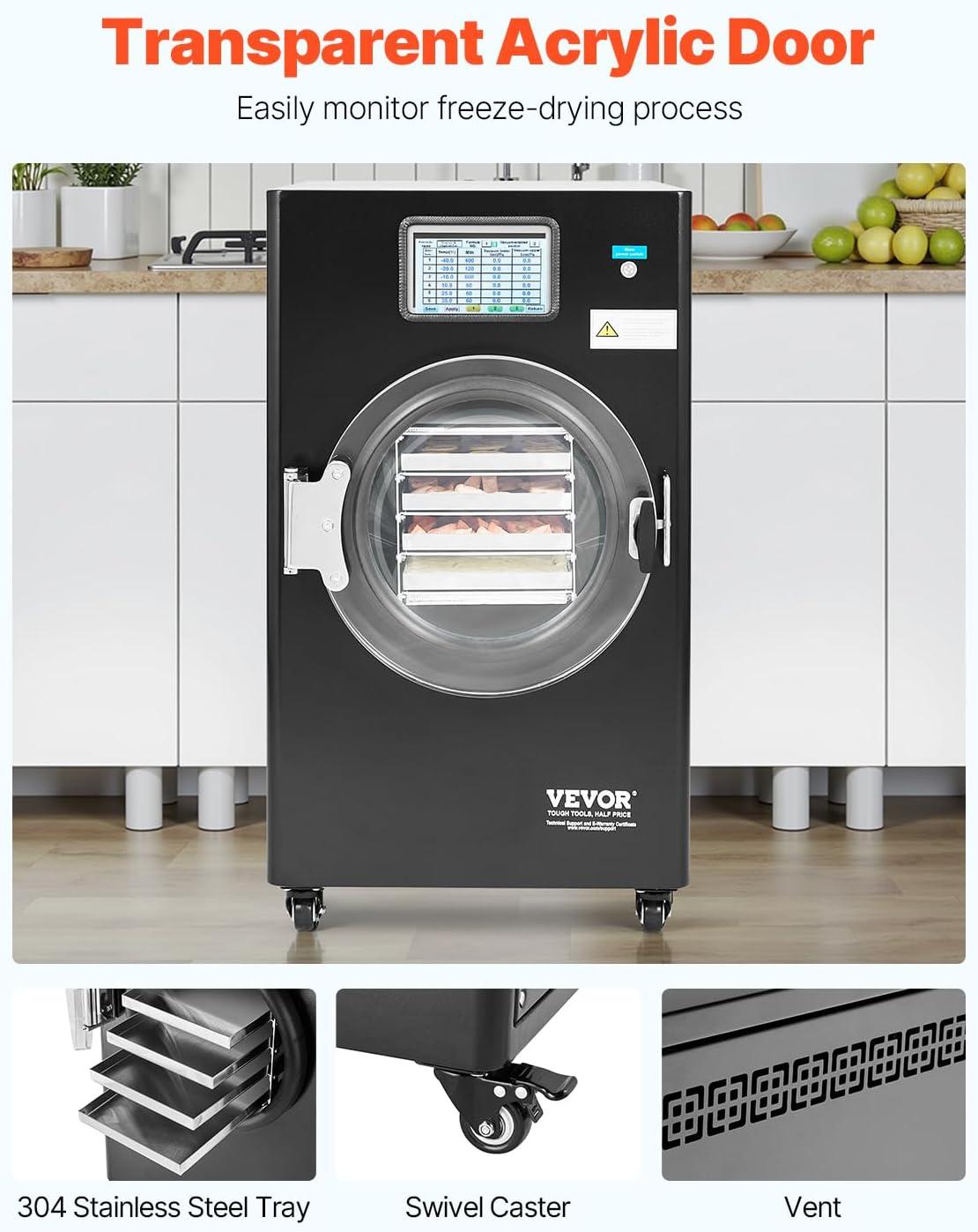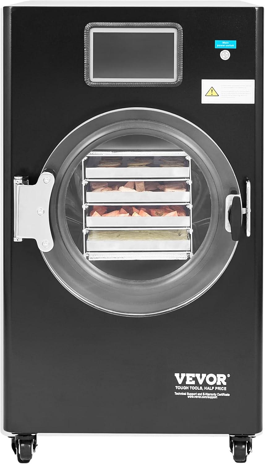 VEVOR Vacuum Freeze Dryer Machine, 8.8-13.2 LBS/Batch Food Freeze Drying Machine with 4-Layer Trays, Vacuum Pump, Adjustable Timer and Temperature Control, for Fruits Vegetables Meat, White(Black)