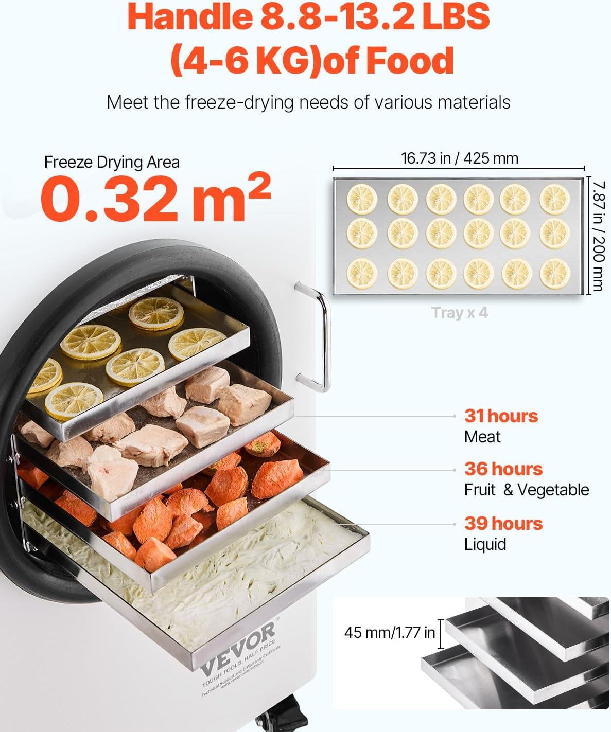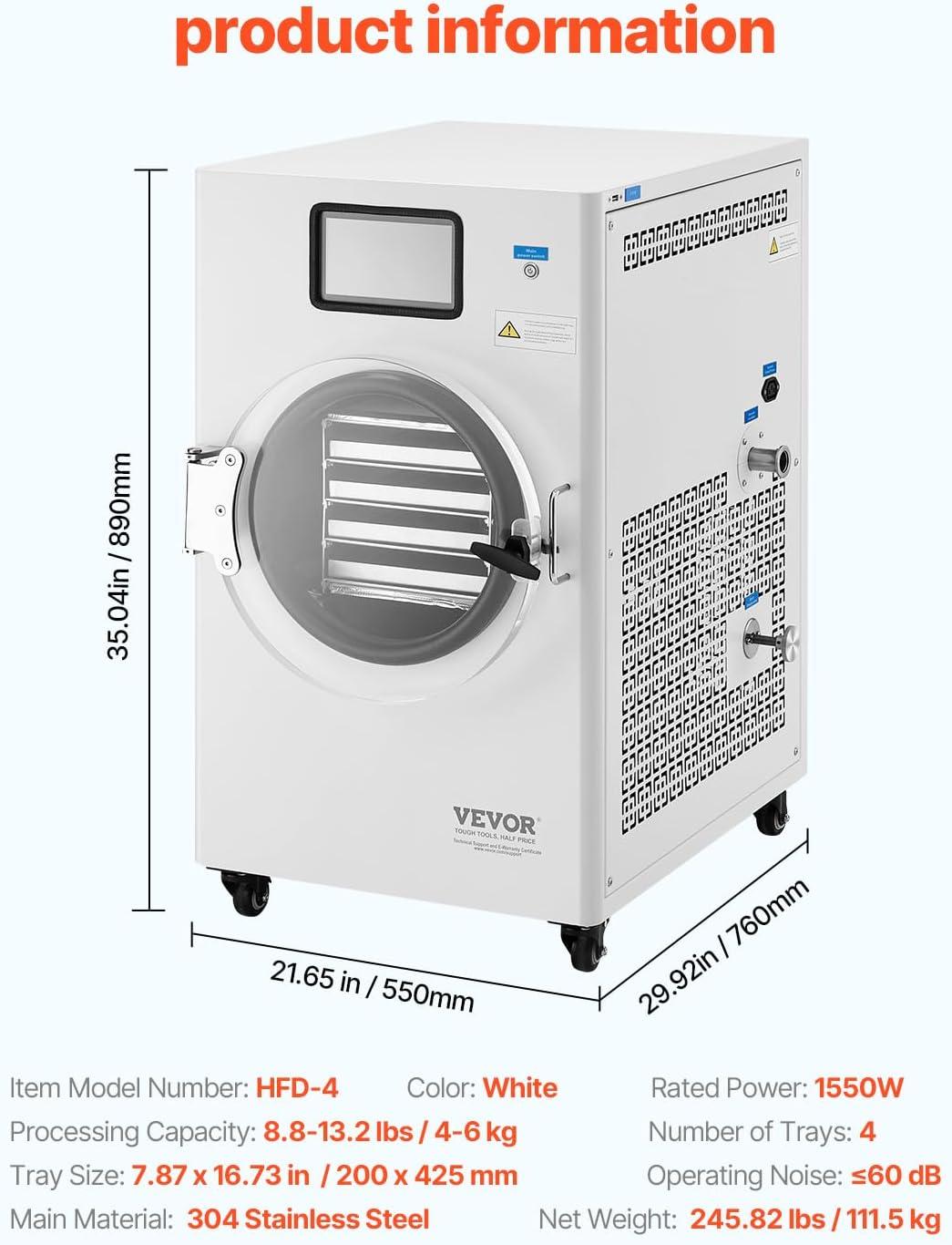 Get your hands on our exclusive VEVOR Vacuum Freeze Dryer Machine, 8.8-13.2 LBS/Batch Food Freeze Drying Machine with 4-Layer Trays, Vacuum Pump, Adjustable Timer and Temperature Control, for Fruits Vegetables Meat, White(White) collection, now at a discounted price.