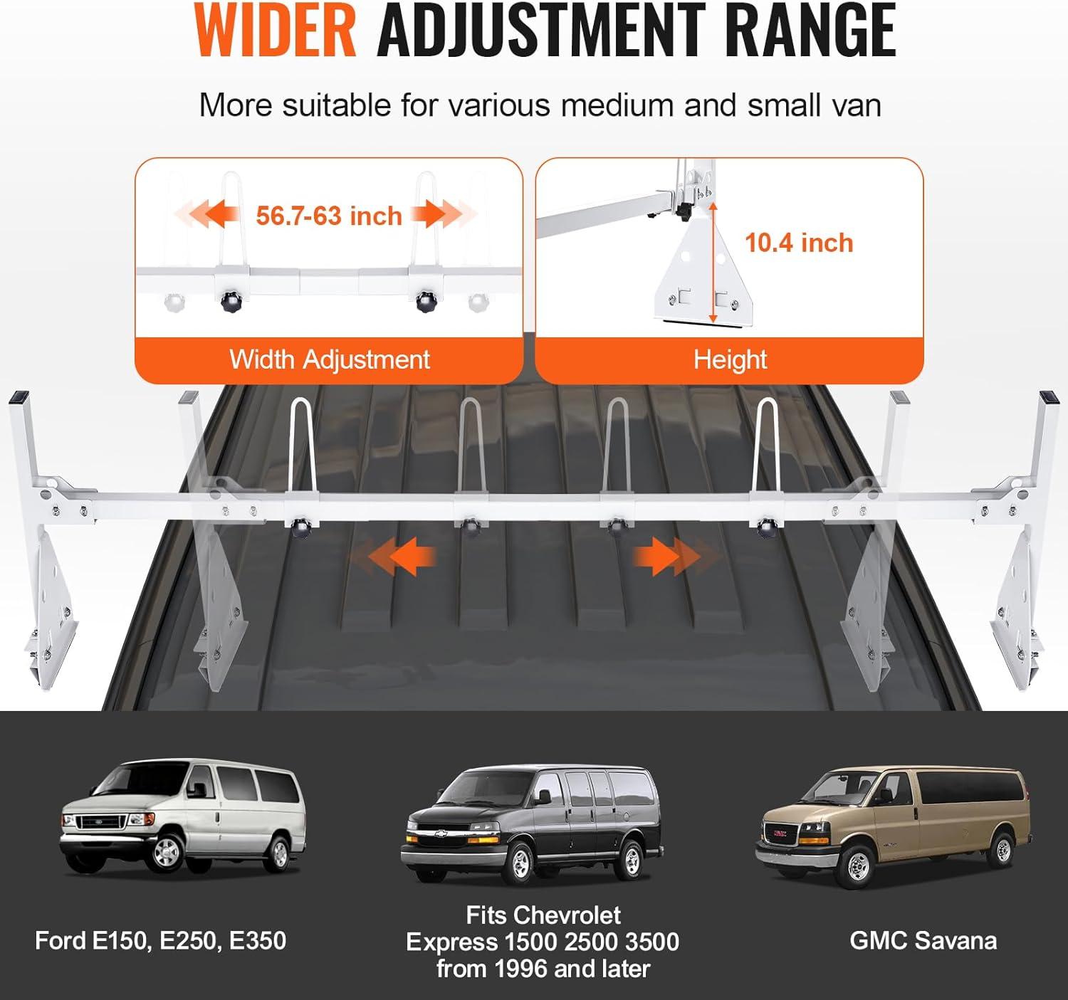 imageVEVOR Van Roof Ladder Racks  59quot Adjustable HeavyDuty Steel Racks 600 lbs Capacity for Chevrolet Express 1500 2500 3500Ford E150 E250 E350GMC Savana 2 Bars3 Bars