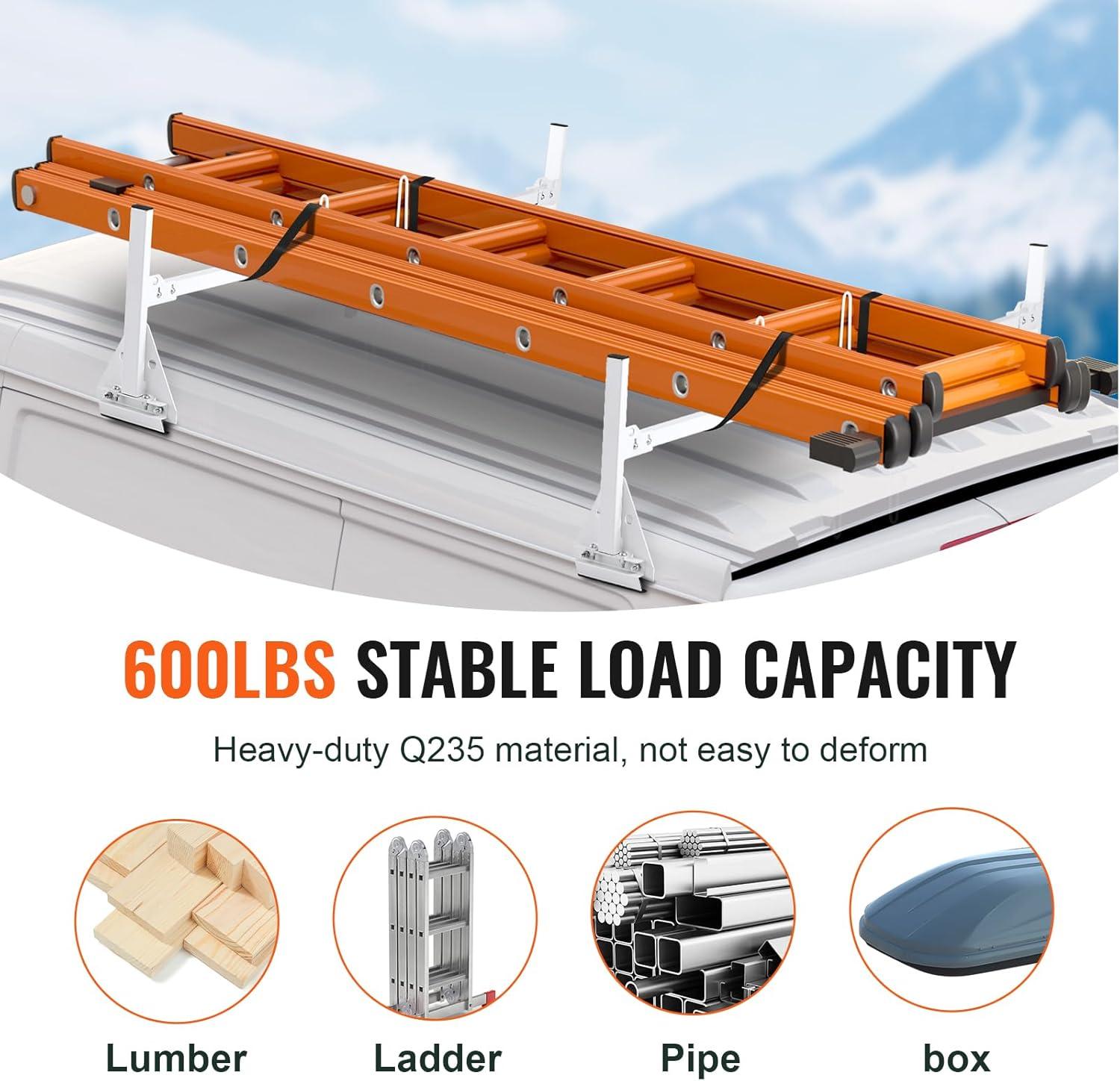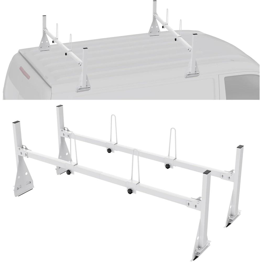 imageVEVOR Van Ladder Racks 472787 in Adjustable 500 lbs Capacity Alloy Steel Compatible with FullSize Vans 2 Pcs Whitefor Minivans