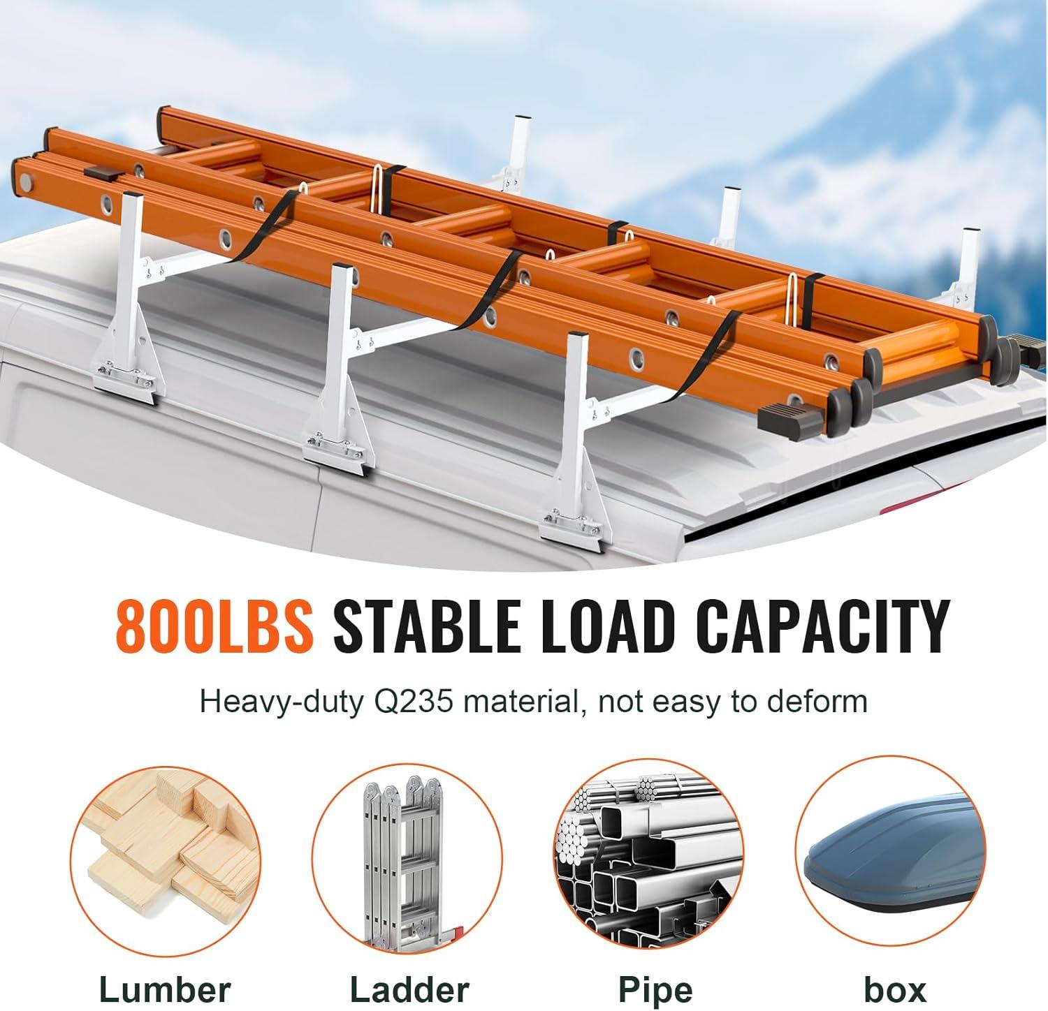 600LBS Multi-Purpose Load Capacity: Constructed from Q235 heavy-duty material with a rust-resistant powder-coated finish. With 2 bars, it supports up to 600 LBS / 272 kg, efficiently utilizing roof space for transporting various large and heavy items such as lumber, ladders, pipes, etc.