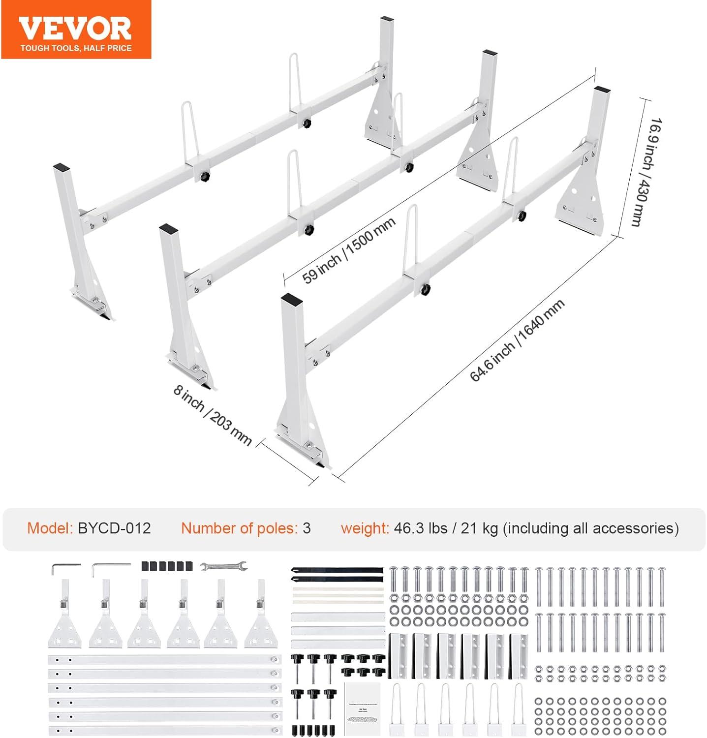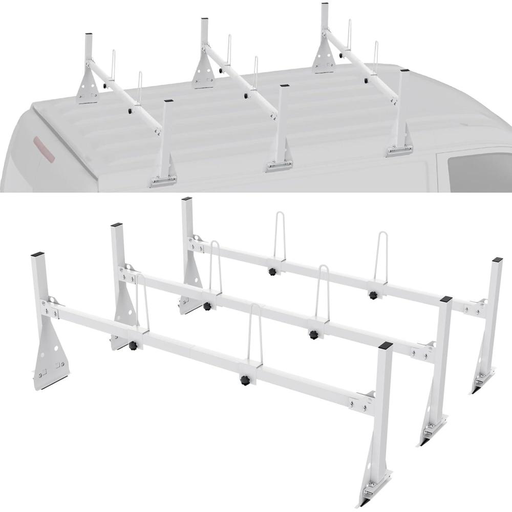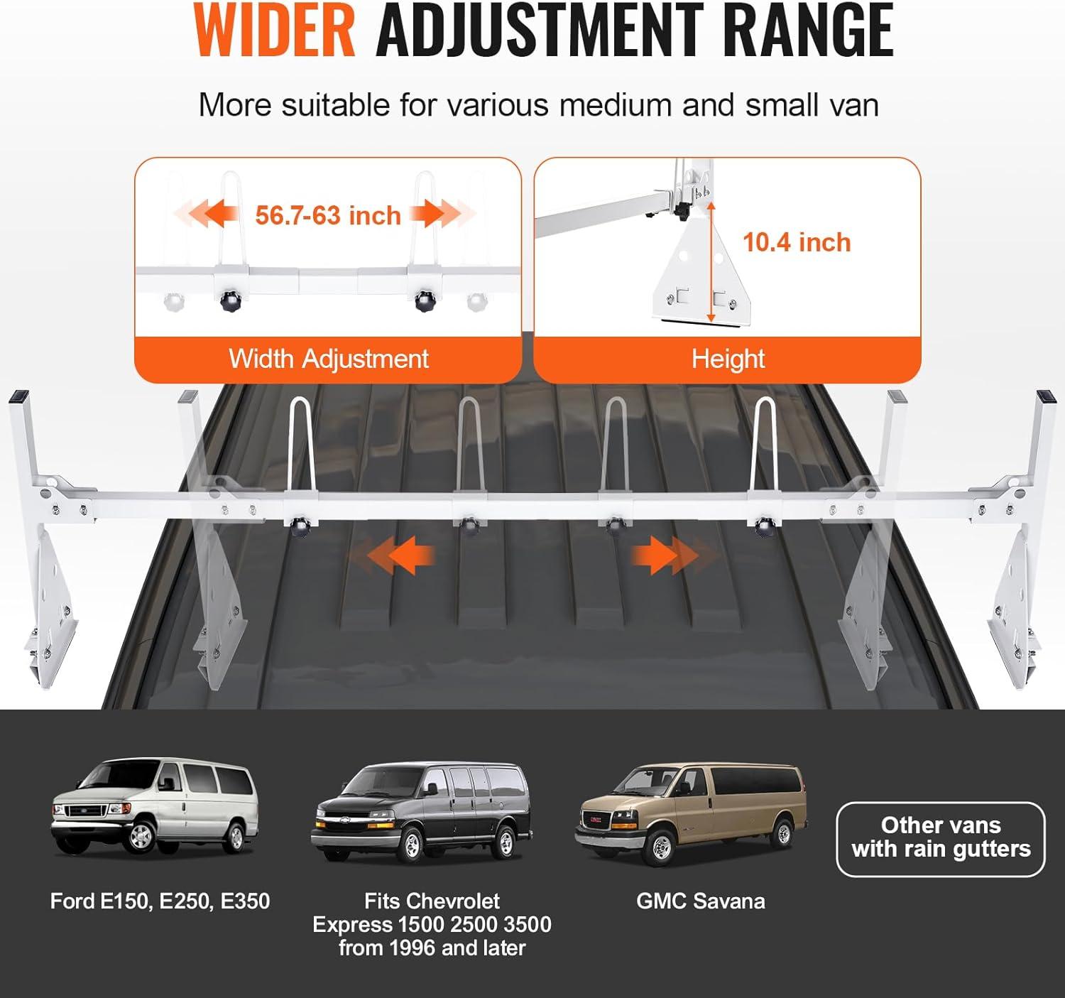 Flexible Adjustment Range: No gear limitations; adjustable within a width range of 56.7-63.0 inches (1440-1600 mm) and height adjustable up to 10.4 inches (265 mm). Designed specifically for medium and small vans, compatible with 1996 and newer Chevrolet Express 1500, 2500, 3500, Ford E150, E250, E350, GMC Savana.