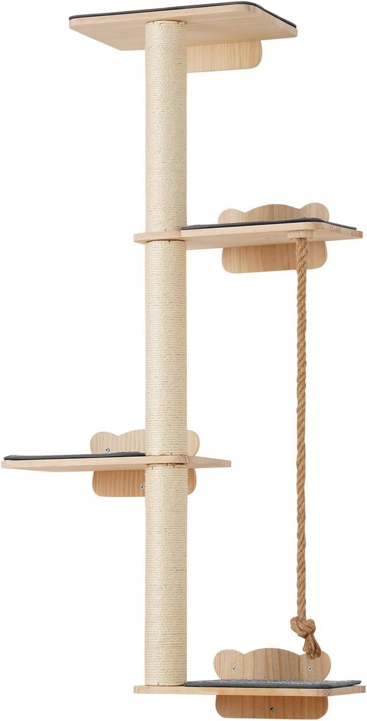 Comfortable and Durable Material: Made from particle board and a metal frame, this wall mounted cat shelf is sturdy and durable, capable of supporting up to 40 lbs (18.14 kg). The natural pine wood is innocuity and odorless, allowing cats to climb and play safely. The platform surface is covered with a plush pad for slip-resistance and softness, protecting your cat's paws.