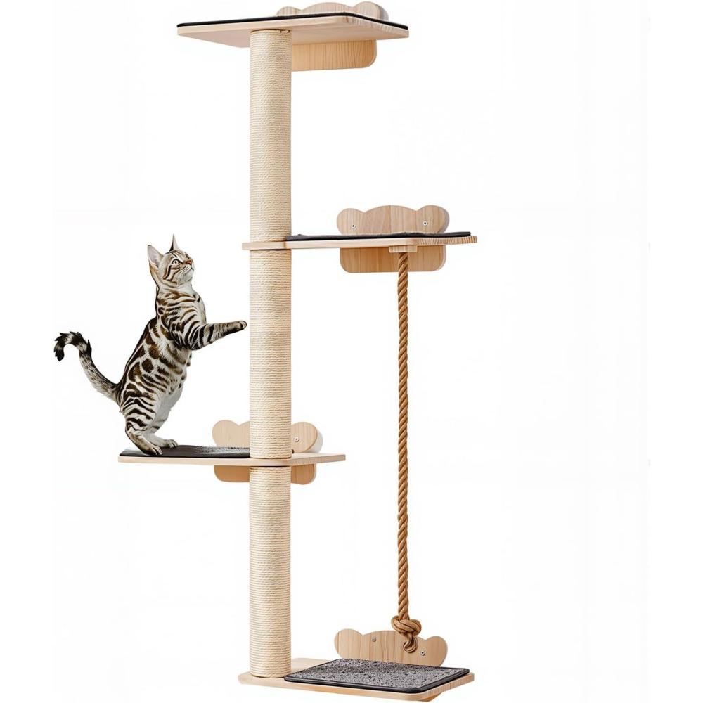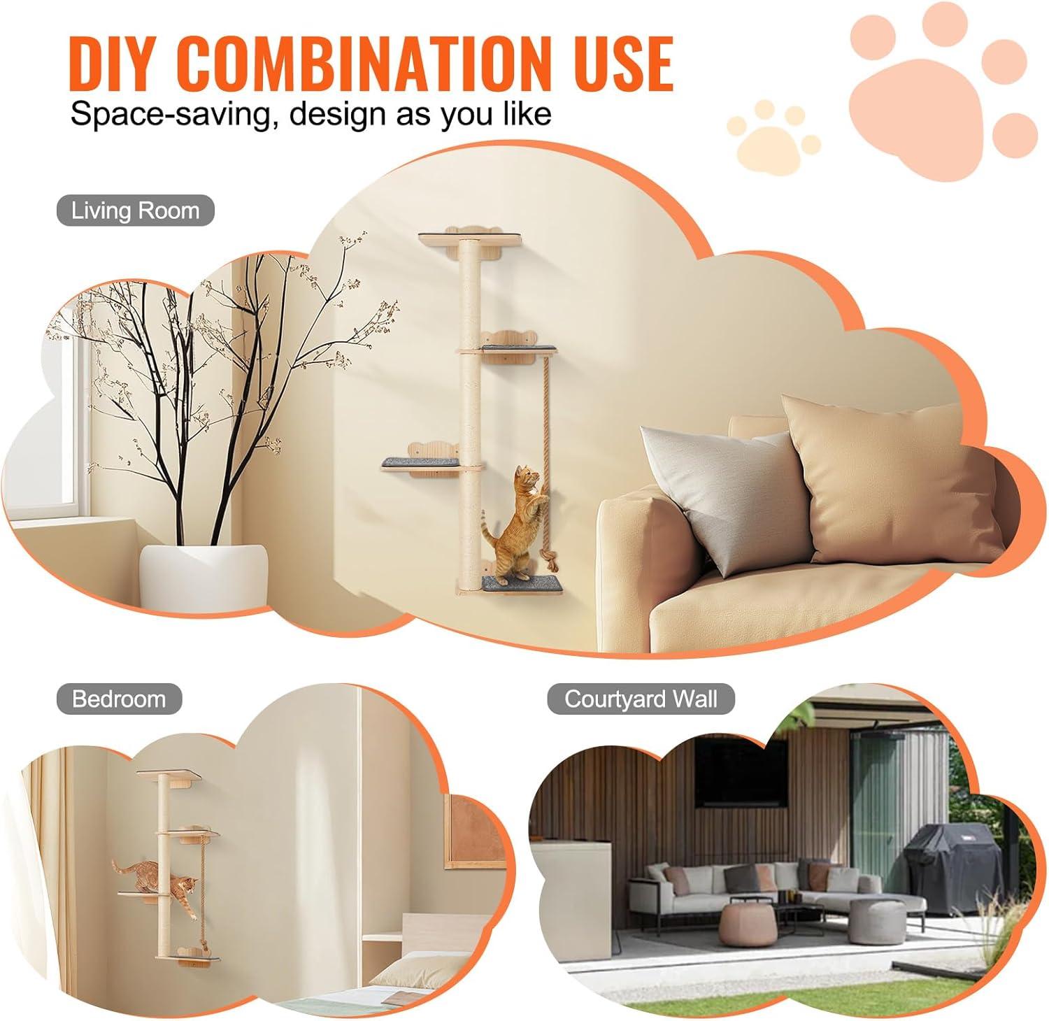 Versatile Use: Our cat wall furniture set can be freely arranged to suit different spaces and preferences. With its minimalist and cute design, the wall-mounted setup saves floor space and blends perfectly with your home decor, whether installed in the living room, bedroom, or patio wall.