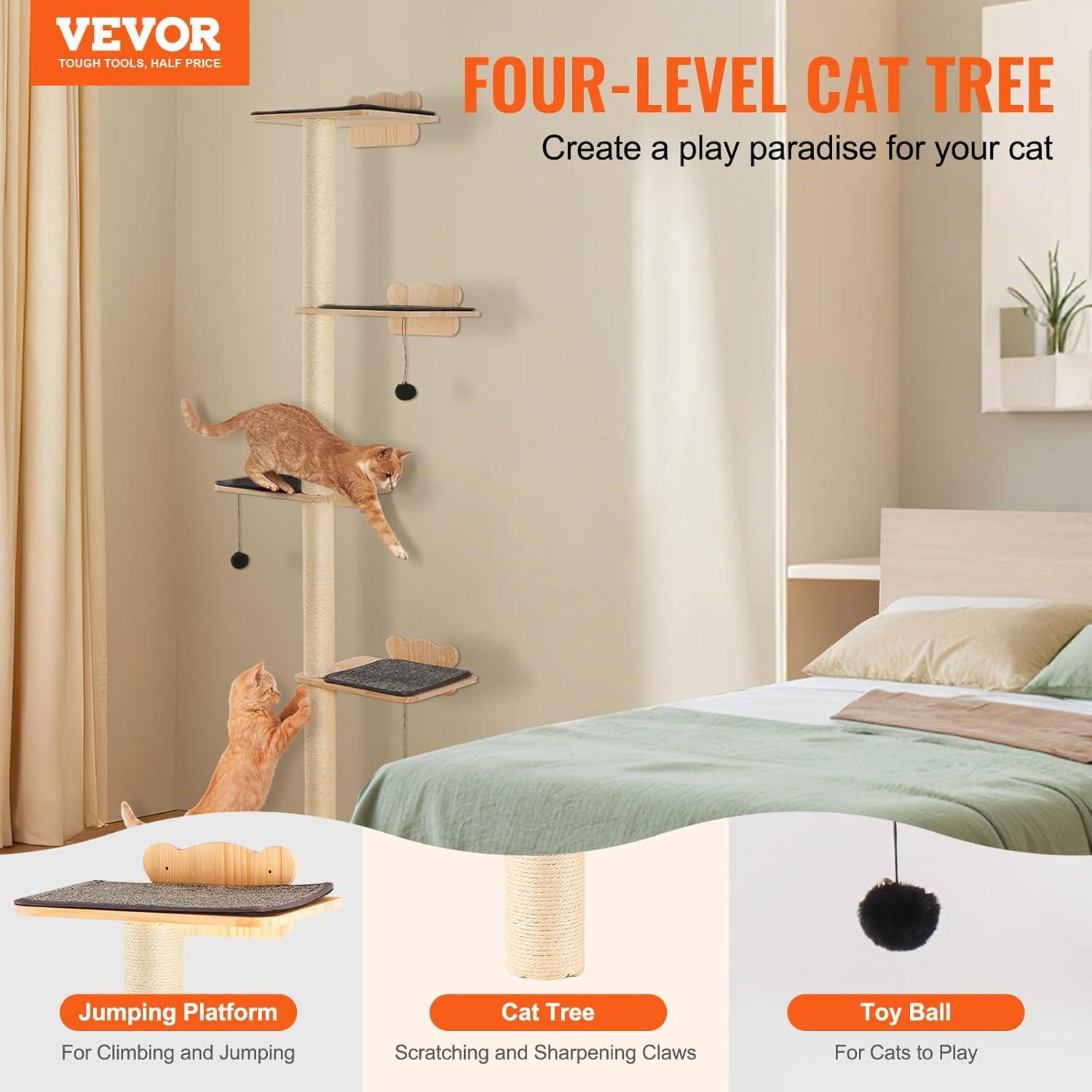 Fun Playground for Cats: This cat wall shelf includes 2 jumping boards, 1 hammock, 1 sofa, 1 cat tree & 1 cat grip, catering to your cat’s needs for climbing, playing, resting, and scratching. It creates a rich environment for your feline to enjoy hours of fun and relaxation.