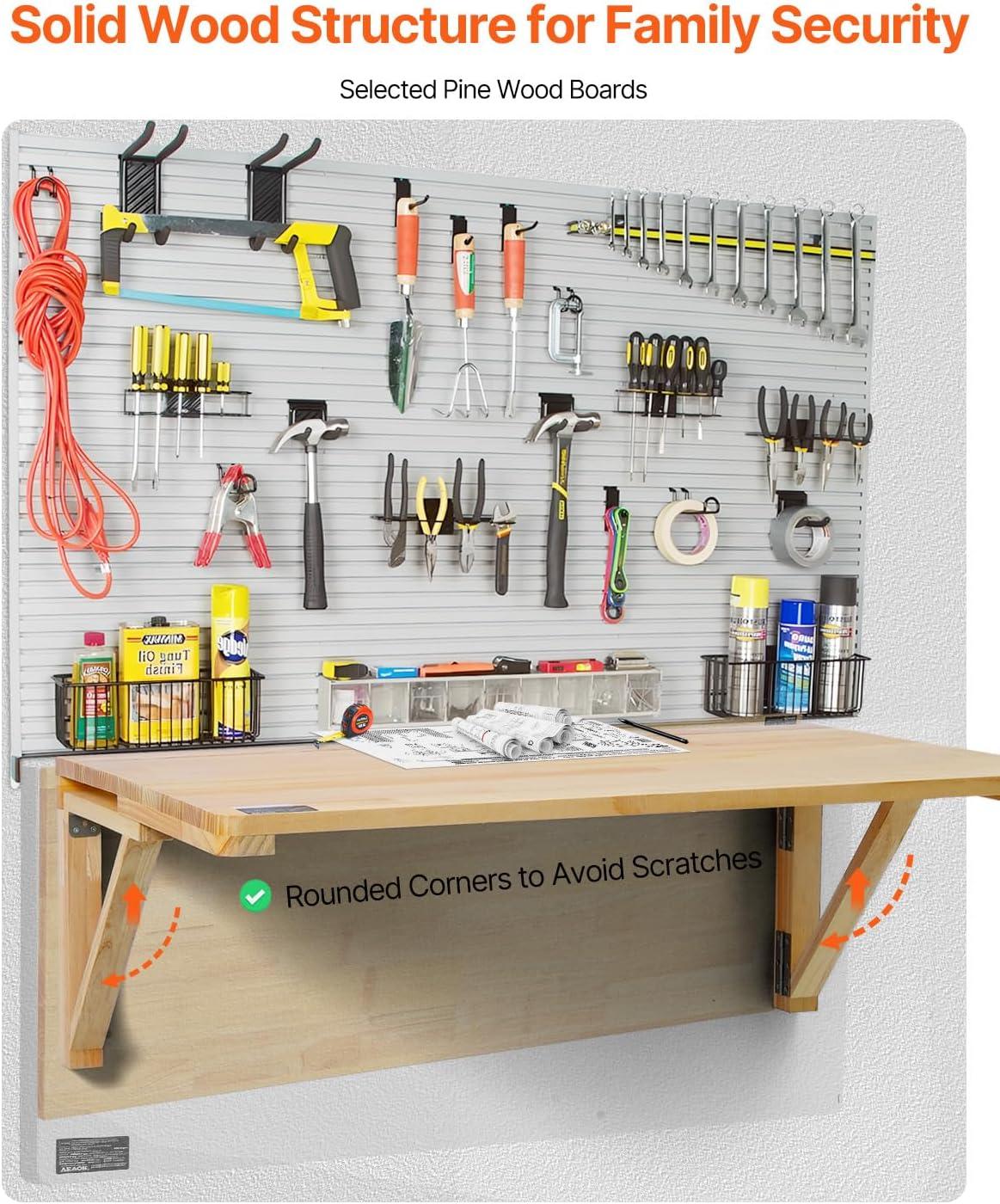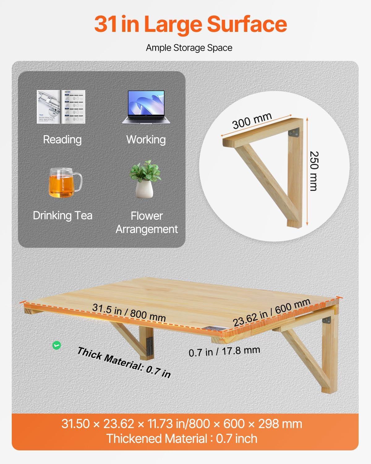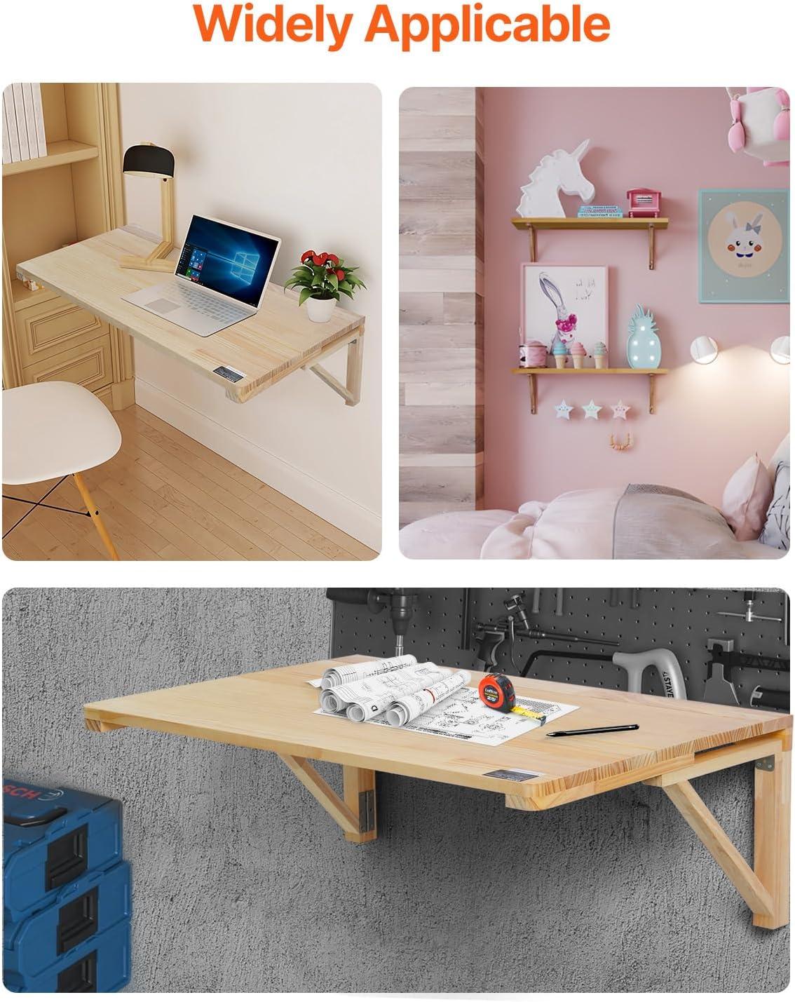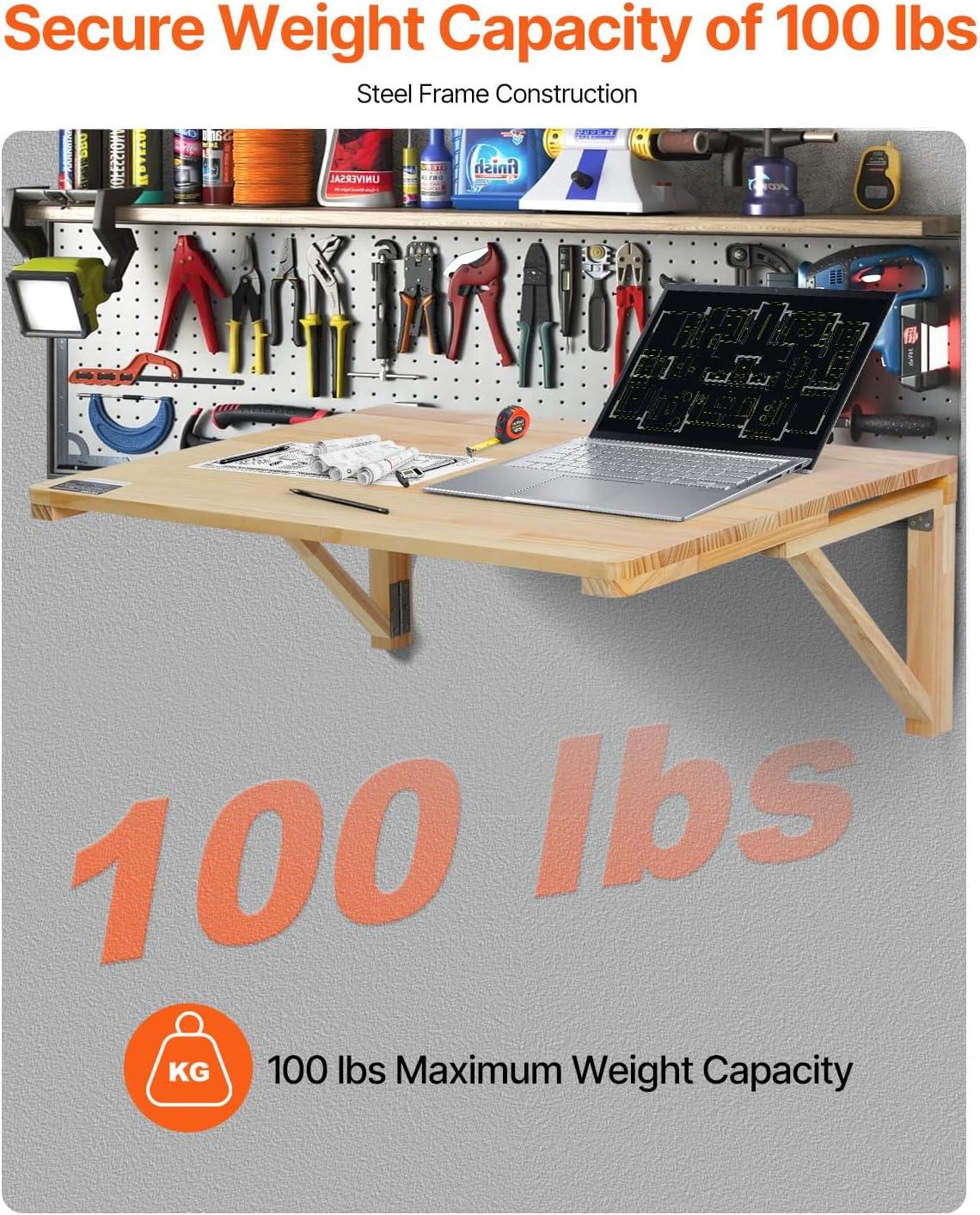 50 lbs High Load Capacity: Despite its compact size, this wall mounted desk holds up to 50 lbs thanks to its thick 0.63-inch material. The fold down table is stable for everything from small tools, large tools, laptops, and heavy books to decor items, ensuring everything stays steady.