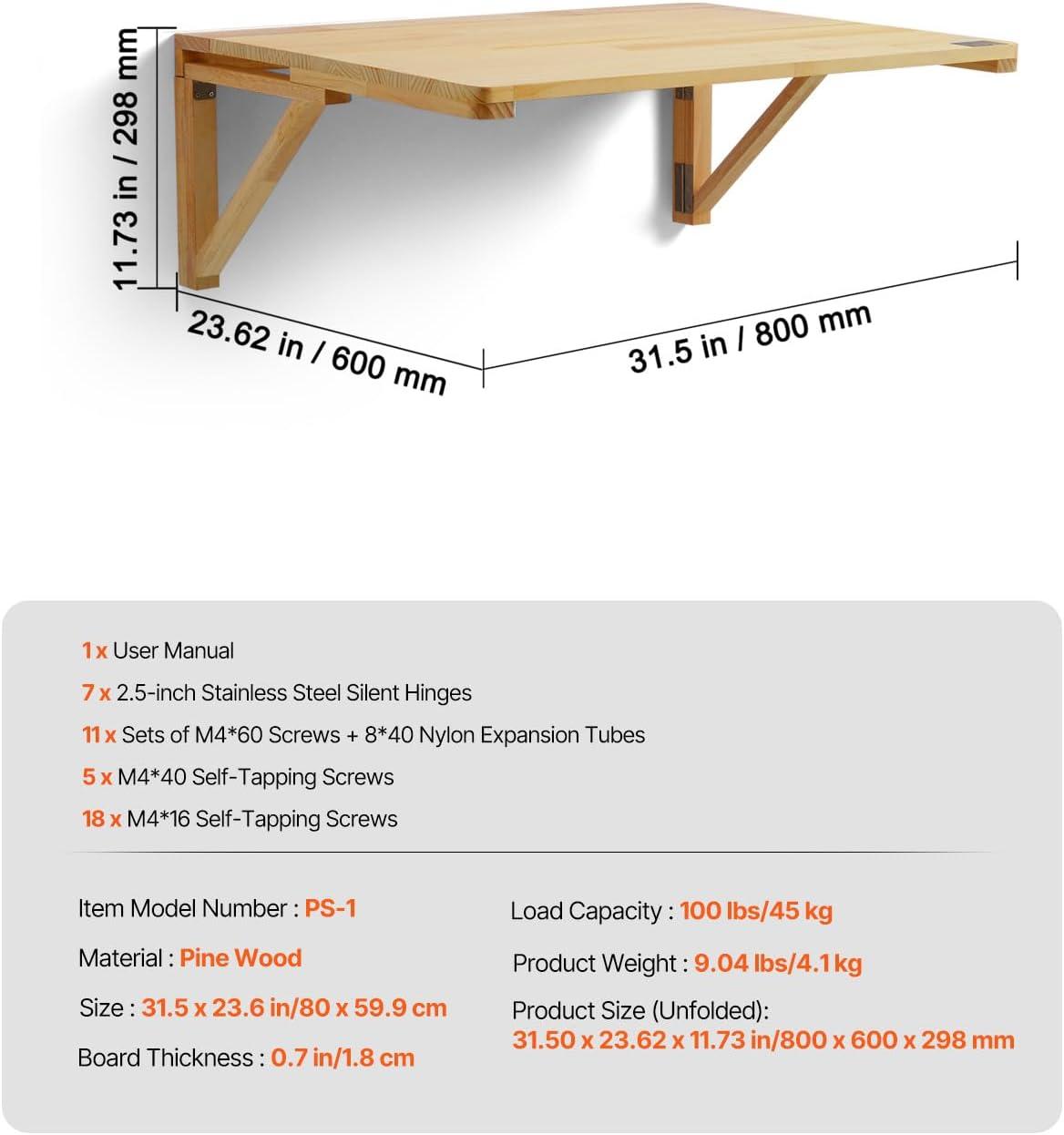 Be the first to review “VEVOR Wall Mounted Folding Table, 31.5″ x 23.6″ Wall Mount Drop Leaf Table, Floating Desk with Iron Bracket for Small Spaces, Home Office Dining Laundry Room Kitchen Bar, White(Wooden 31.5″ x 23.62″)”