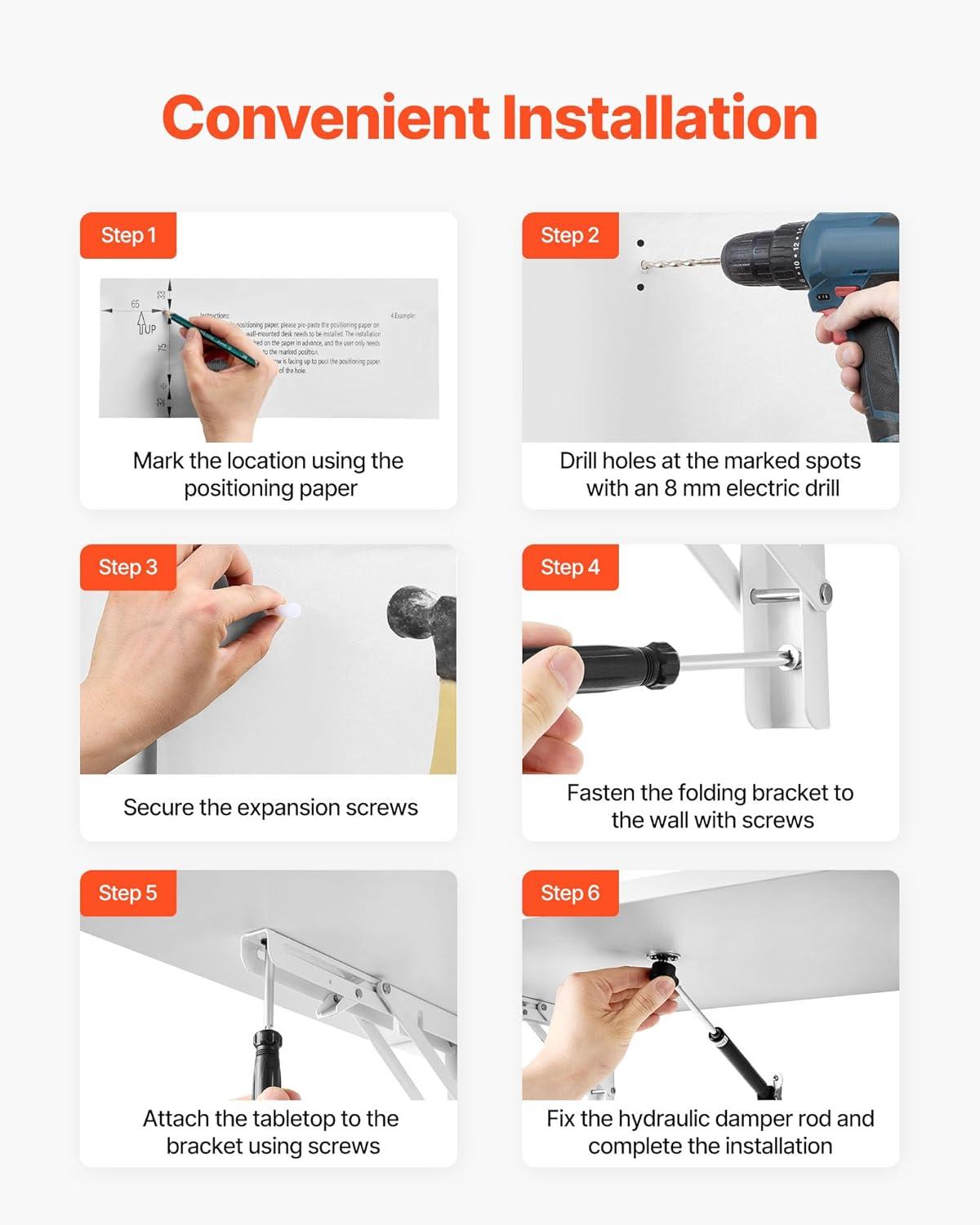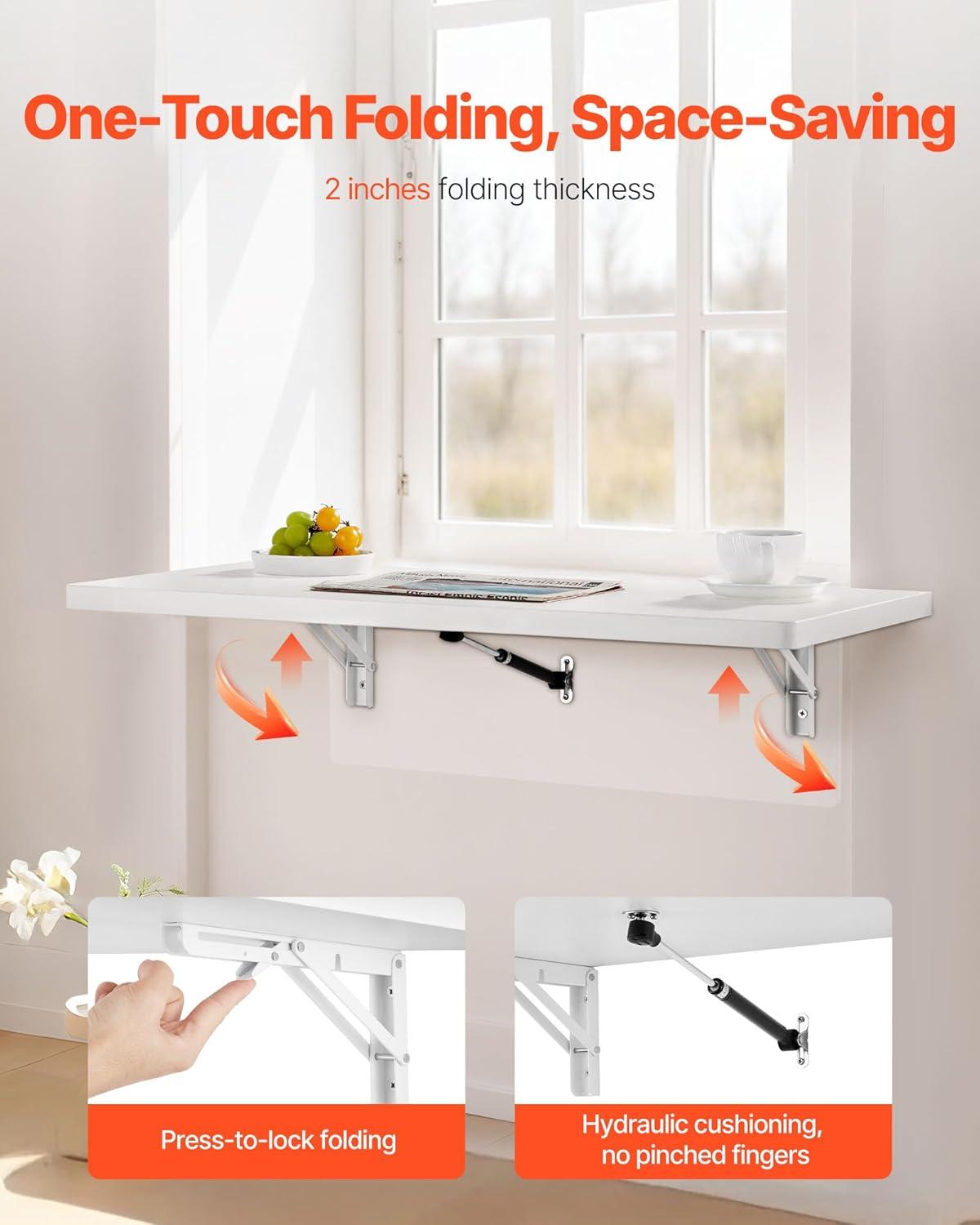 One-touch Folding: Simply press a button to fold the wall mounted table, saving 2 inches of space when not in use. The hydraulic mechanism ensures smooth, secure closing, so no more pinched fingers—just pure convenience