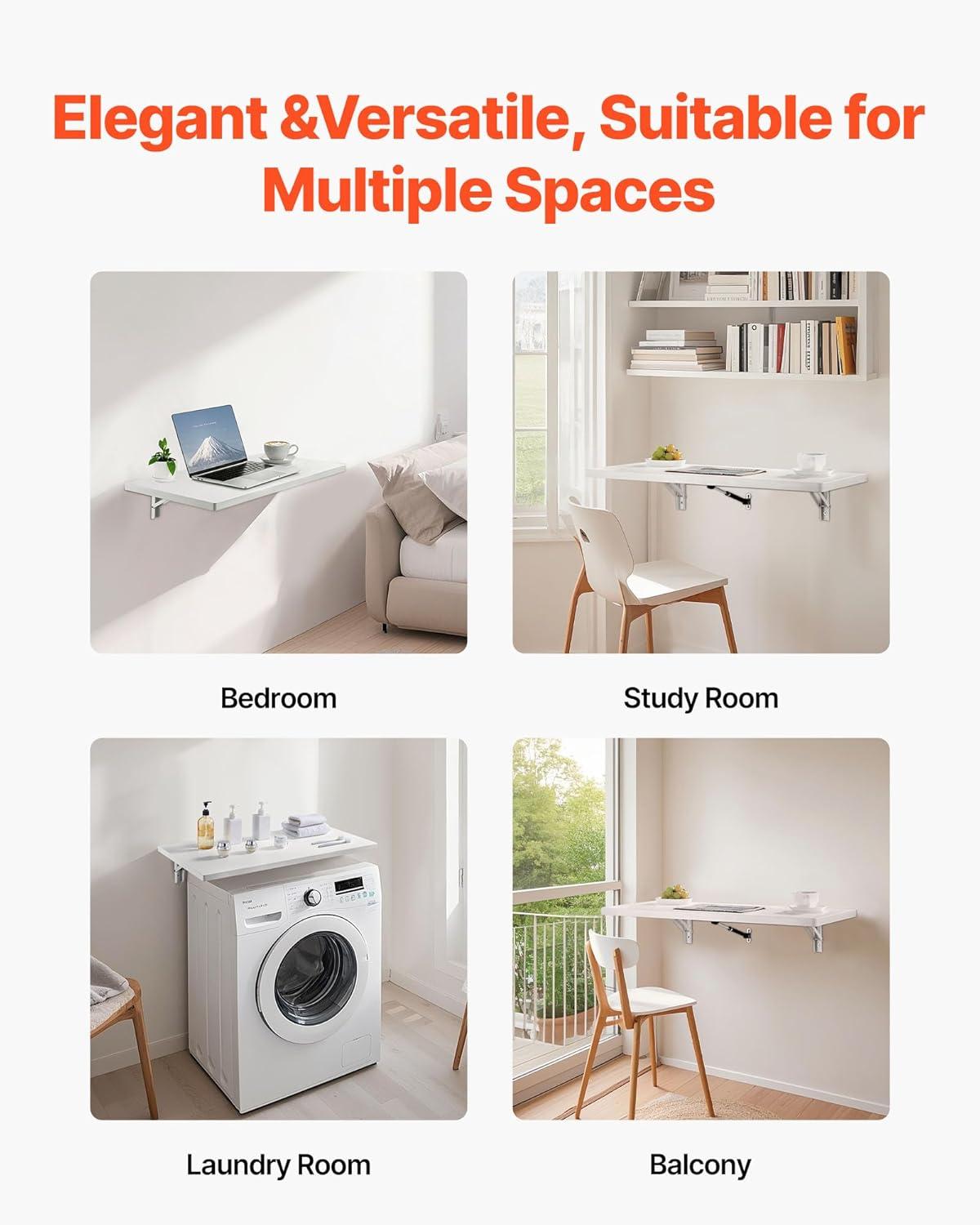 Versatile Use: This sleek wall mounted folding table fits anywhere—from home offices to laundry rooms, study areas to the living room. It’s ideal for transforming any space into a functional, stylish spot