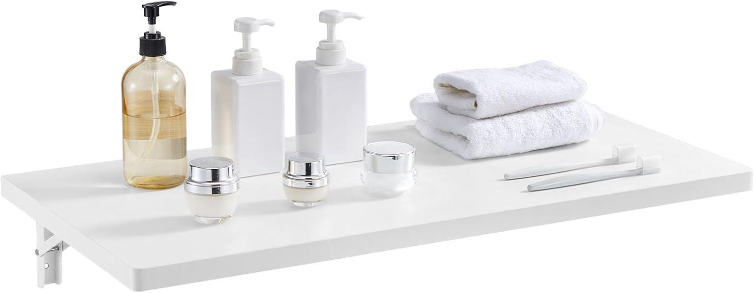 VEVOR Wall Mounted Folding Table, 39.4 x 19.7 inches Wall Mount Table, Floating Desk with Iron Bracket for Small Spaces, Home Office, Dining, Laundry Room, Kitchen, Bar, White(15.75"D x 31.5"W)