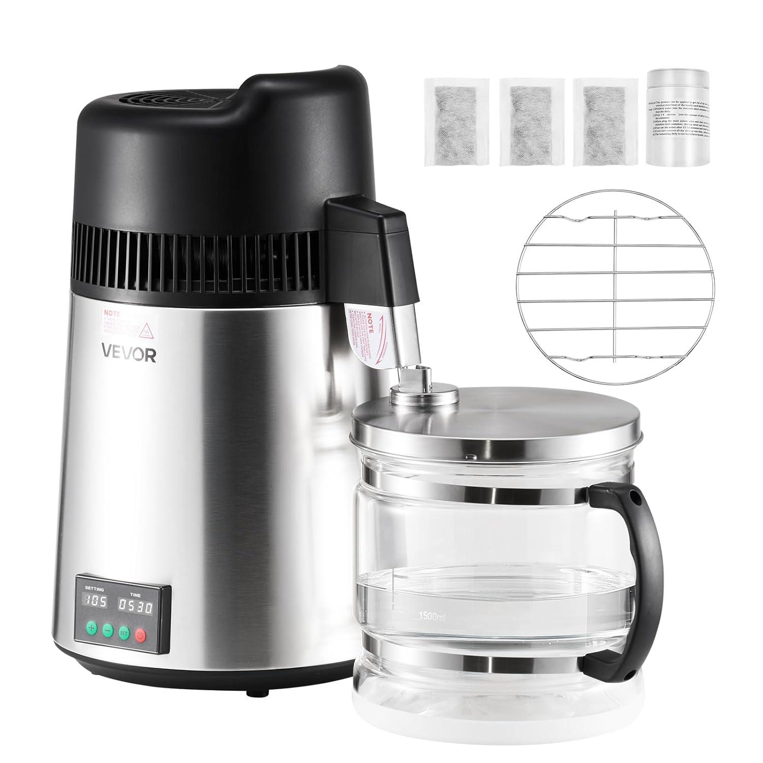VEVOR Water Distiller, 6L 1.6 Gallon Larger Pure Water Purifier Filter For Home Table Countertop, 900W Glass Pot Distilled Maker, Stainless Steel Interior Drinking Machine to Make Clean Waters, Silver(Sliver 1.6Gal)
