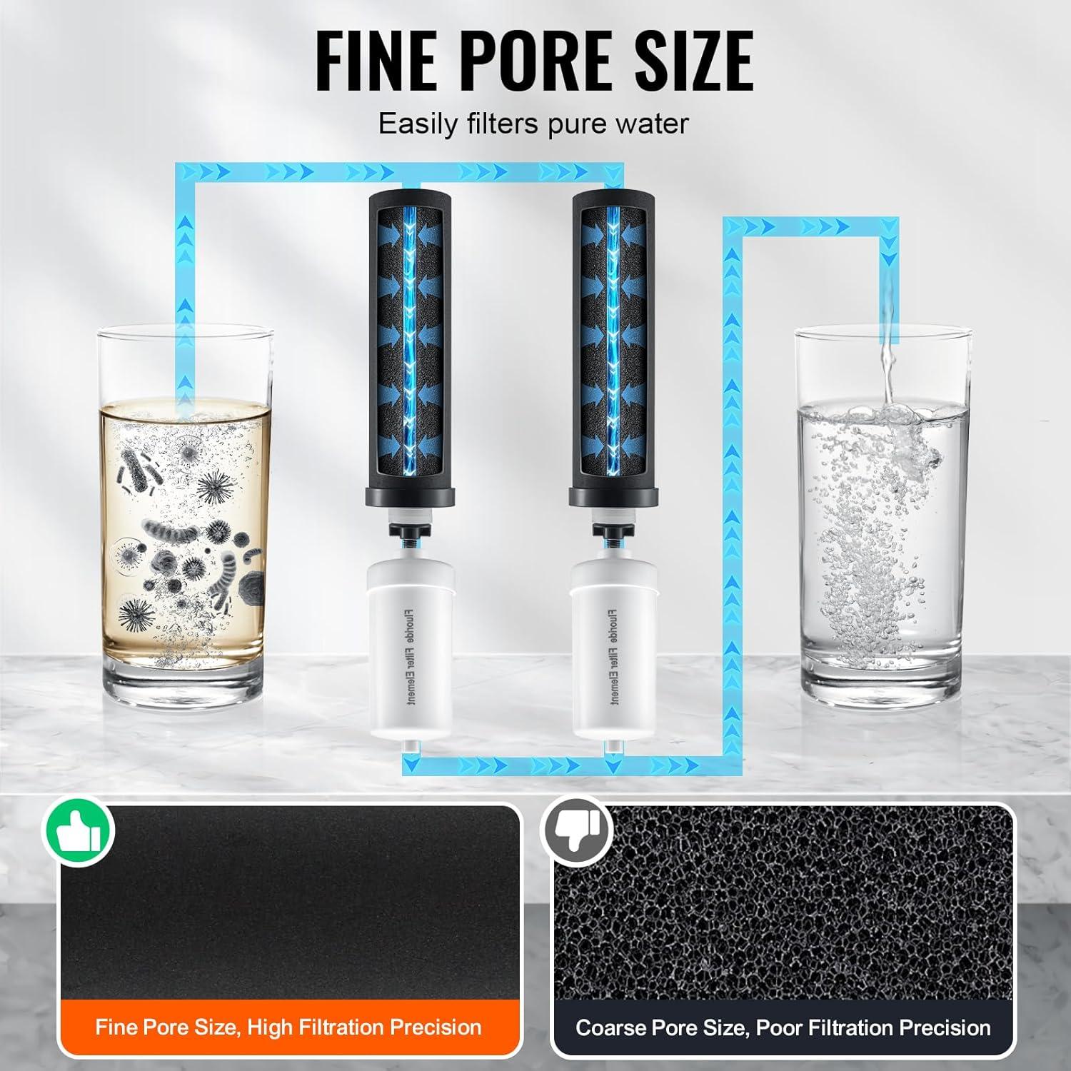99.9% Effective Chlorine Removal: The gravity water filter provides effective filtration with fine pores that remove 99% of chlorine from water. It improves water taste and reduces heavy metals, sediments, rust, soil, and other impurities.