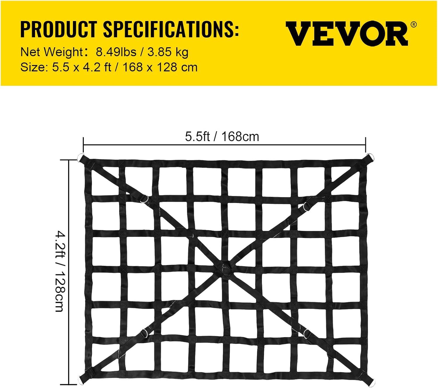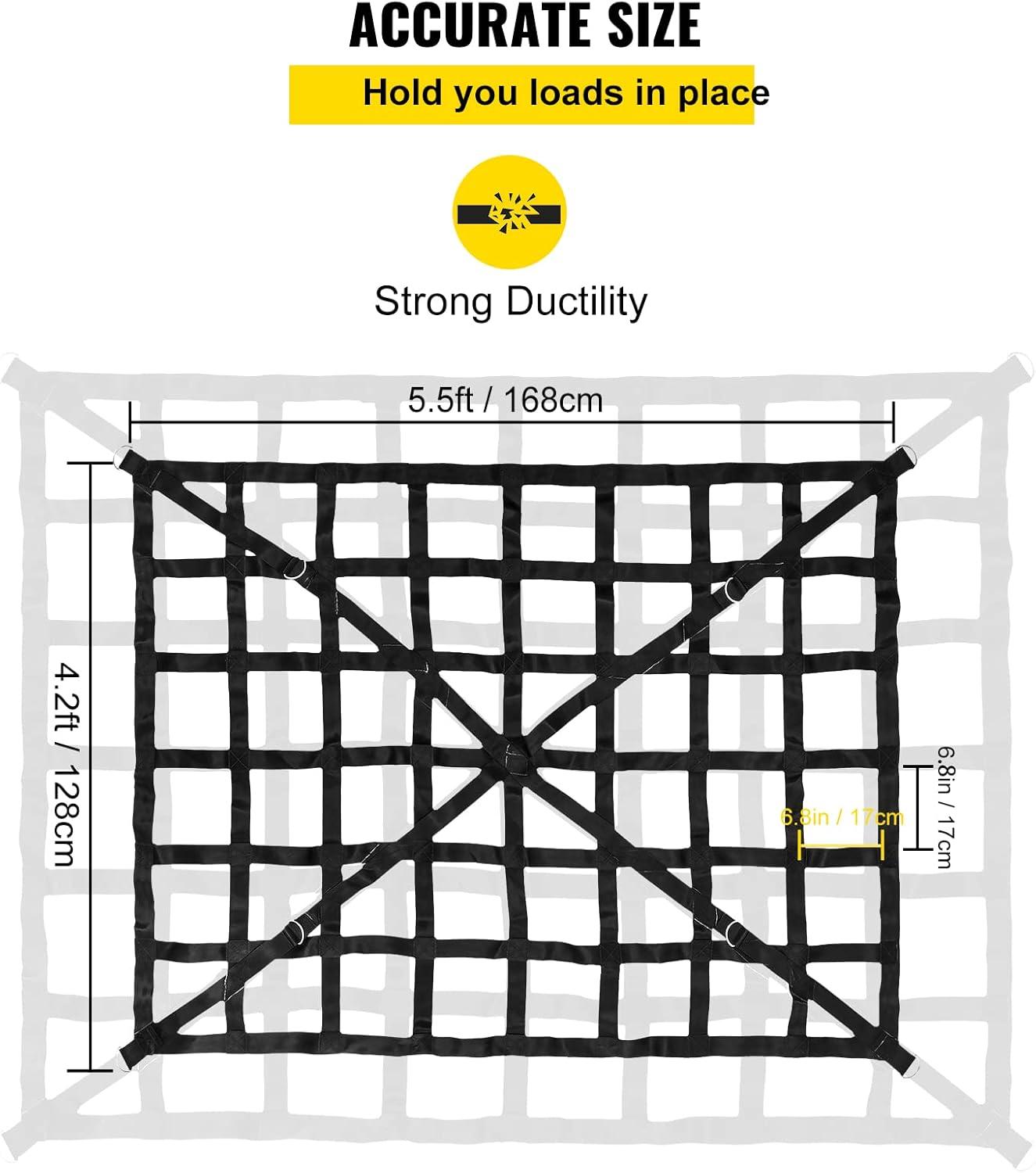 VEVOR Waterproof Cargo Net, 72 in x 57 in, Heavy Duty Truck Cargo Net-(WLL) 700lbs, 4 Adjustable Straps with Carabiners & S-Hooks, Truck Bed Cover for Trailer, Pickup, Boat, Jeep, SUV 4.75' x 6' ft(4.2' x 5.5')