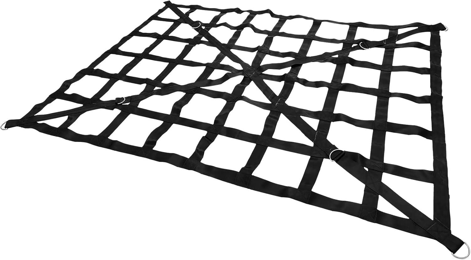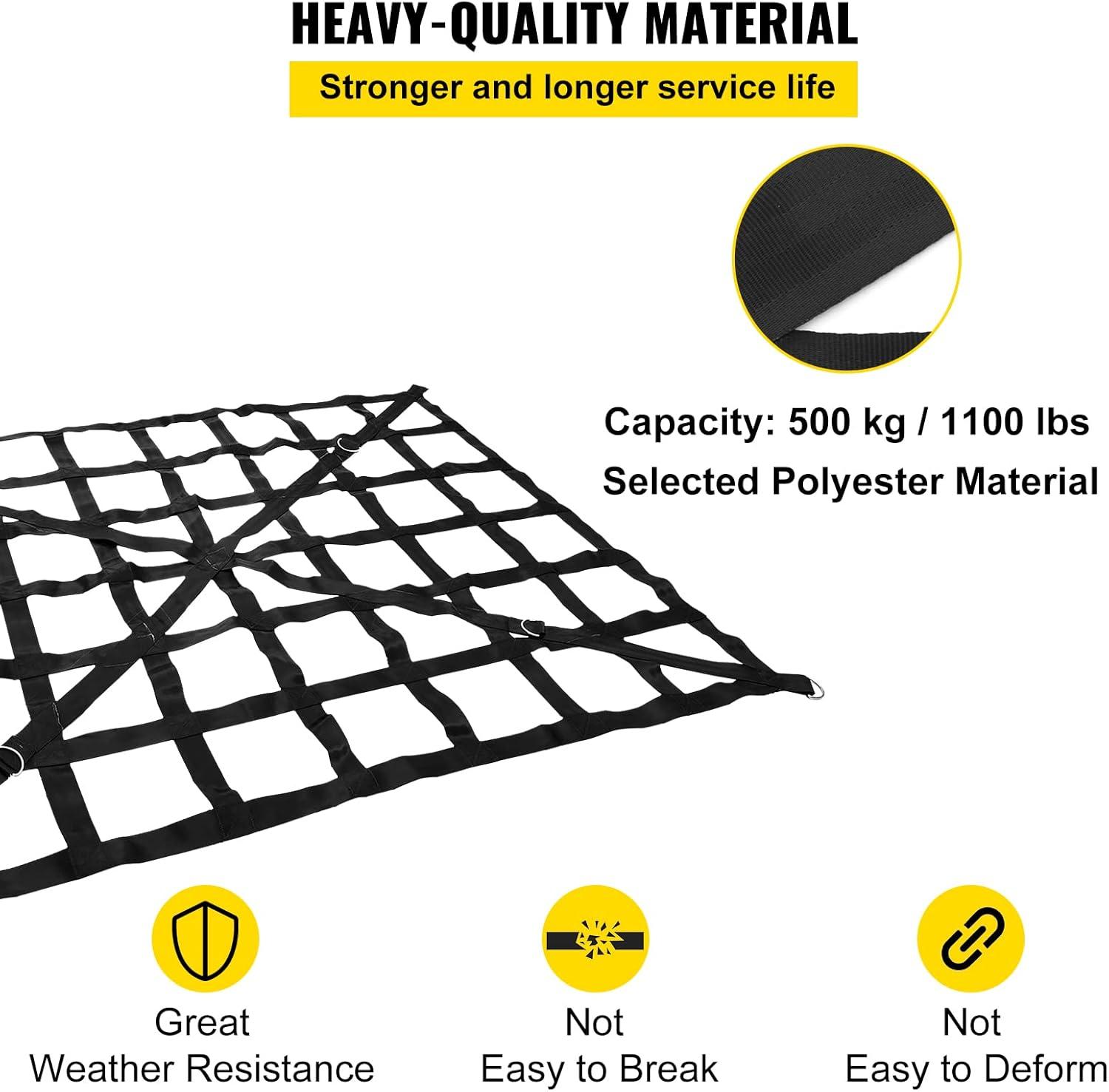 Flexible Adaption to Various Cargos: VEVOR weatherproof cargo net comes with up to 40 metal fixed points, equipped with 13″ – 59″ adjustable straps and multi-gear buckles. So you can use the equipped metal buckles to adjust the fixed points according to the different sizes and shapes of the cargos as needed. Upgraded multi-gear buckles can improve the stability of the telescopic straps, are not easy to loosen, and are suitable for heavy or irregular cargos use.
