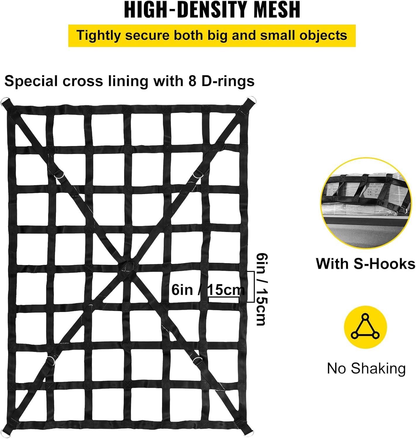 VEVOR Waterproof Cargo Net, 72 in x 57 in, Heavy Duty Truck Cargo Net-(WLL) 700lbs, 4 Adjustable Straps with Carabiners & S-Hooks, Truck Bed Cover for Trailer, Pickup, Boat, Jeep, SUV 4.75′ x 6′ ft(6′ x 4.75′ – 700lbs)