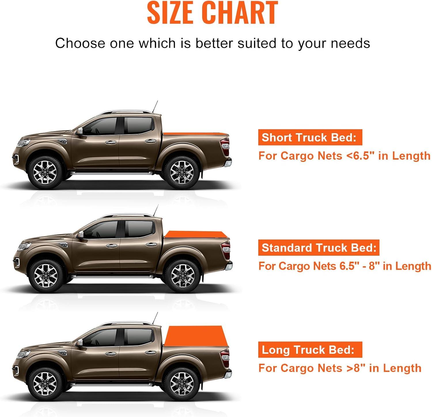 Easy Installation for Various Vehicles: Installation and disassembly are very easy. You only need to connect rubber coated hooks to the car. So you can easily fix the cargo net on a variety of vehicles for use, whether it is a truck, trailer, pickup, jeep, SUV or even a boat. 4.75' x 6' size suitable for short truck bed use. (Tip: Make sure you have fixed anchor points or bolts on your truck!)