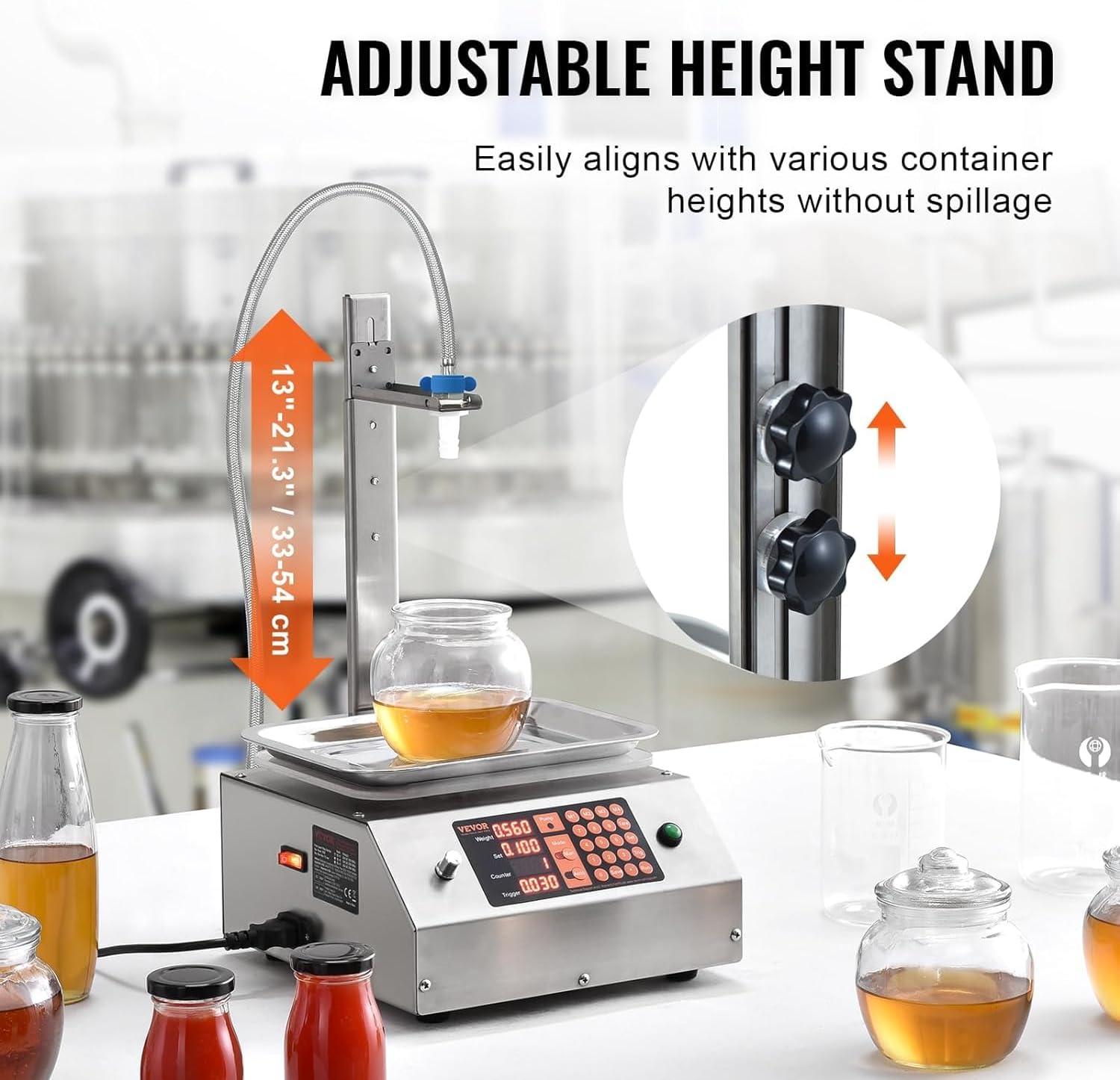 Precision Alignment: Our liquid bottle filler comes with a height-adjustable stand, catering to various container filling needs. It simplifies container alignment, prevents spillage during filling, maintains a clean workspace, and boosts work efficiency.