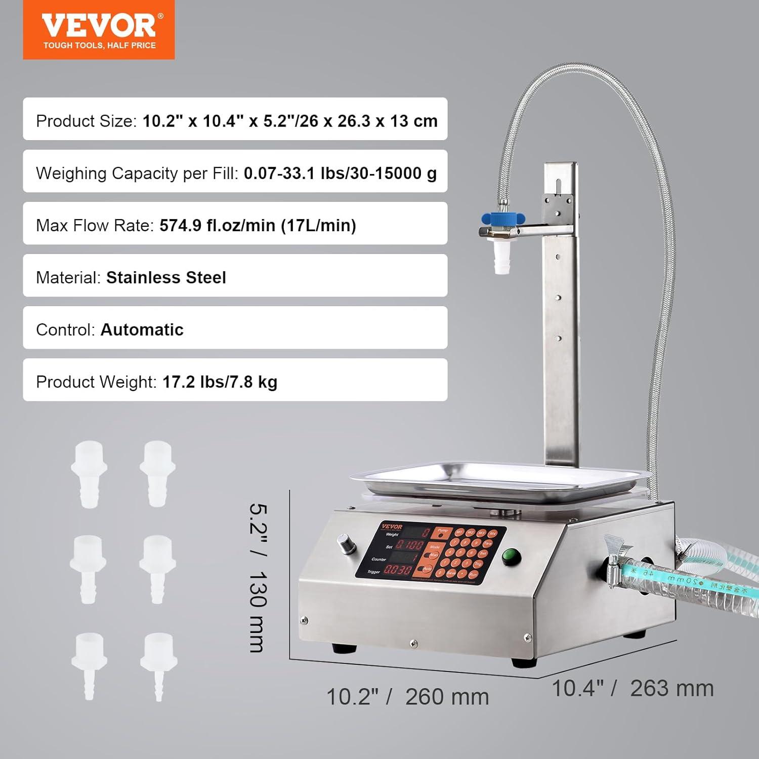 VEVOR Weighing Filling Machine, 5-50g Digital Liquid Filling Machine, 3.2L/min Bottle Filling Machine, Peristaltic Pump with Filling Speed Control Function for Perfume, Cooking Oil, Drink and Wine(30-15000g)