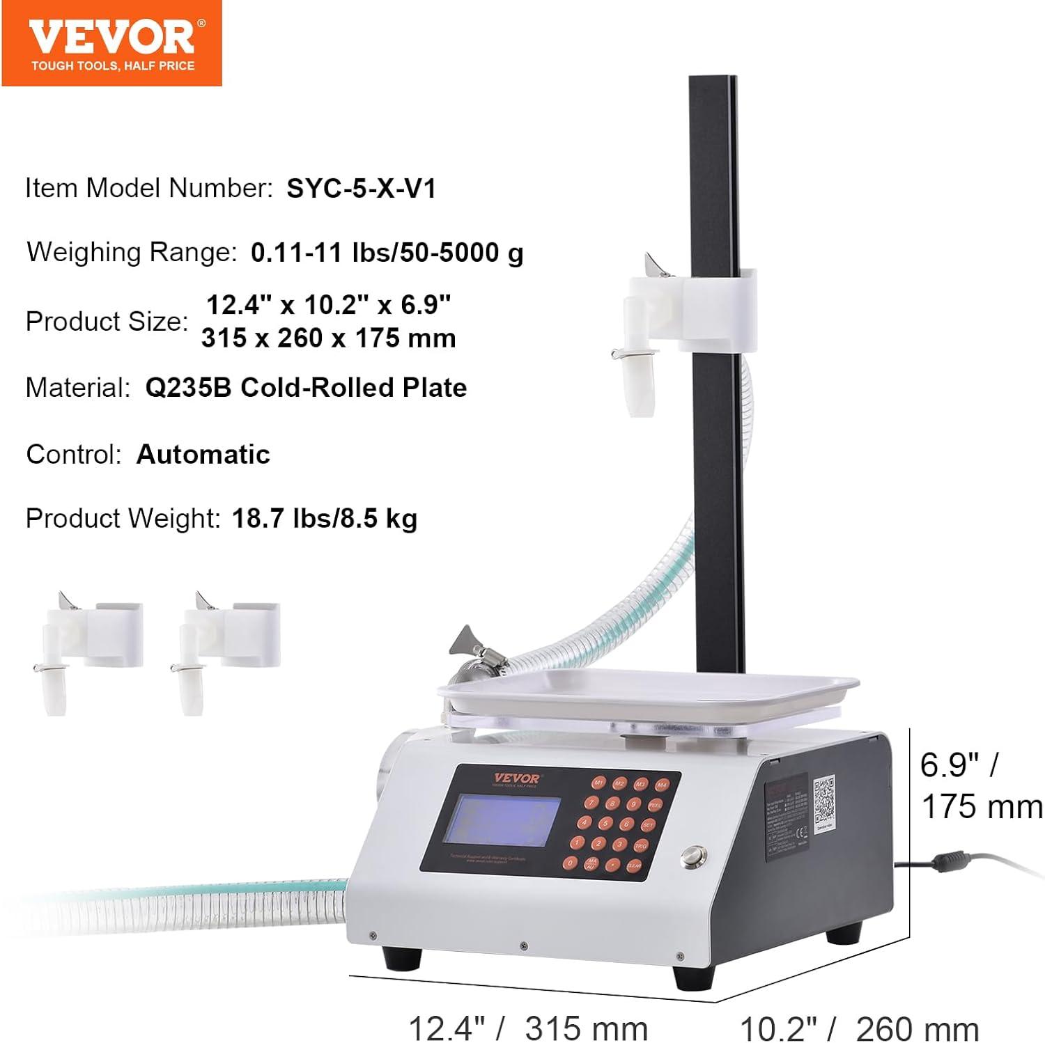 VEVOR Weighing Filling Machine, 5-50g Digital Liquid Filling Machine, 3.2L/min Bottle Filling Machine, Peristaltic Pump with Filling Speed Control Function for Perfume, Cooking Oil, Drink and Wine(50-5000g)