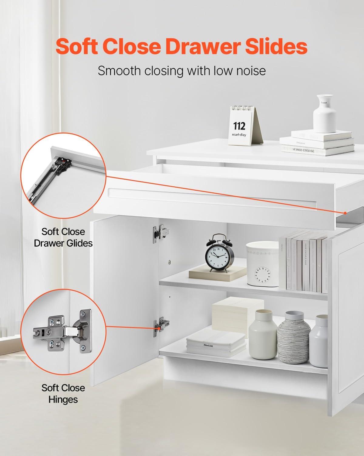 Soft Close Drawer: Equipped with a smooth sliding drawer, each with an internal dimension of 17.99 x 19.09 x 3.95 inch. The drawer opens and closes effortlessly, with soft-close slides that slow down the drawer when closing, reducing noise and shock. The white shaker cabinet is ideal for use in living rooms, offices, entryways, and garages