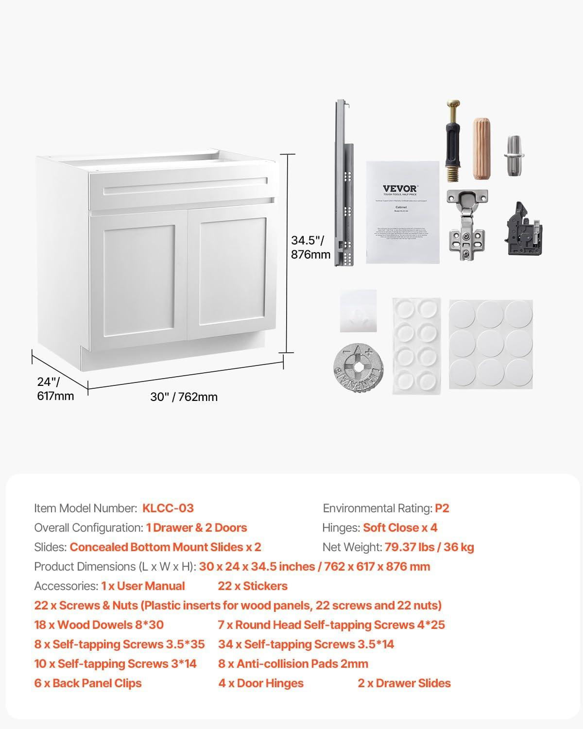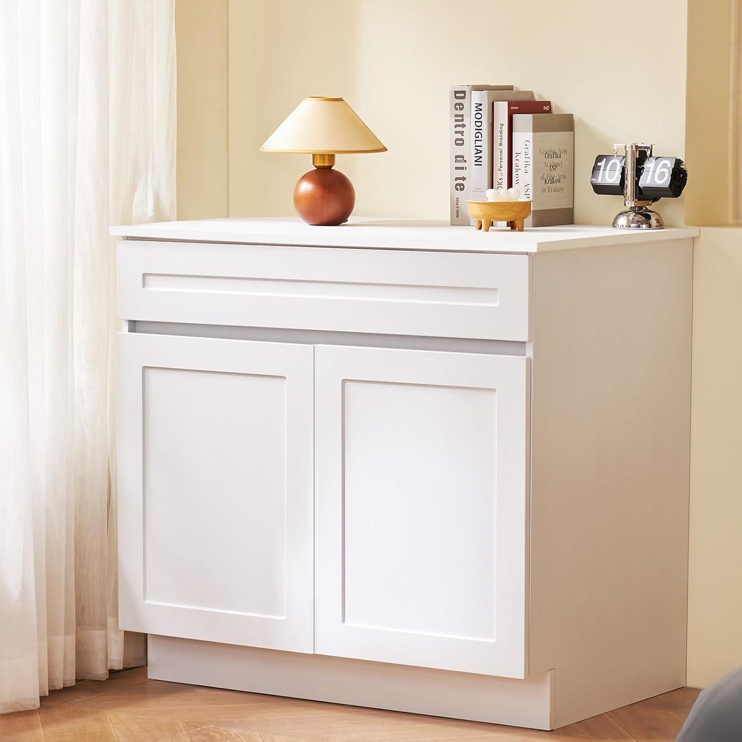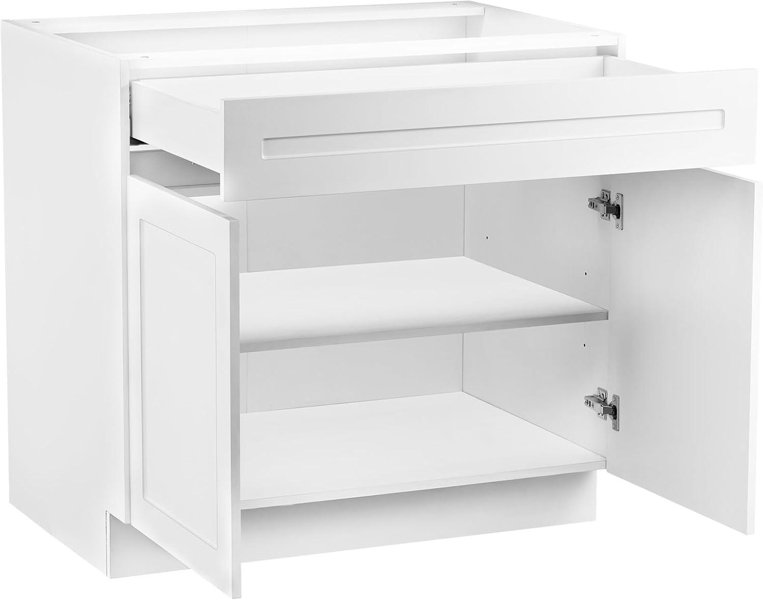 VEVOR White Shaker Base Cabinet with Drawer, 36-Inch Unassembled Drawer Base Cabinet, 36" W x 24" D x 34.5" H Ready to Assemble Cabinet with Soft-Close Doors and Adjustable Shelf, for Home Office(30"W Base Cabinet)