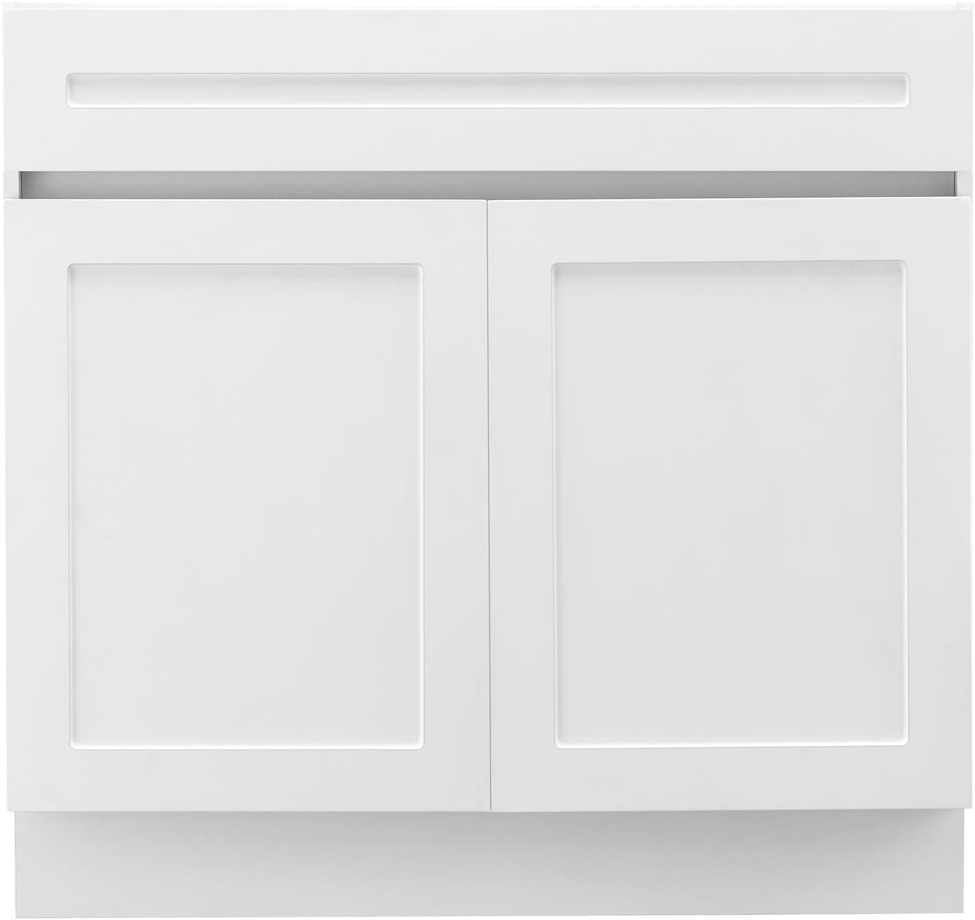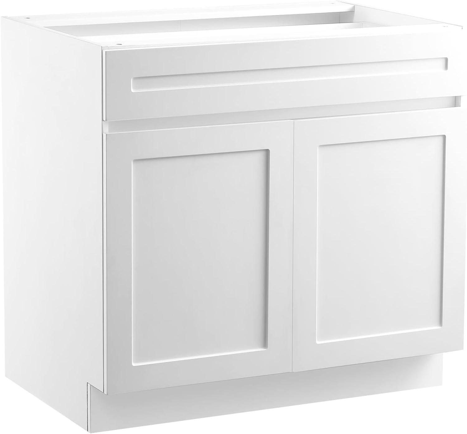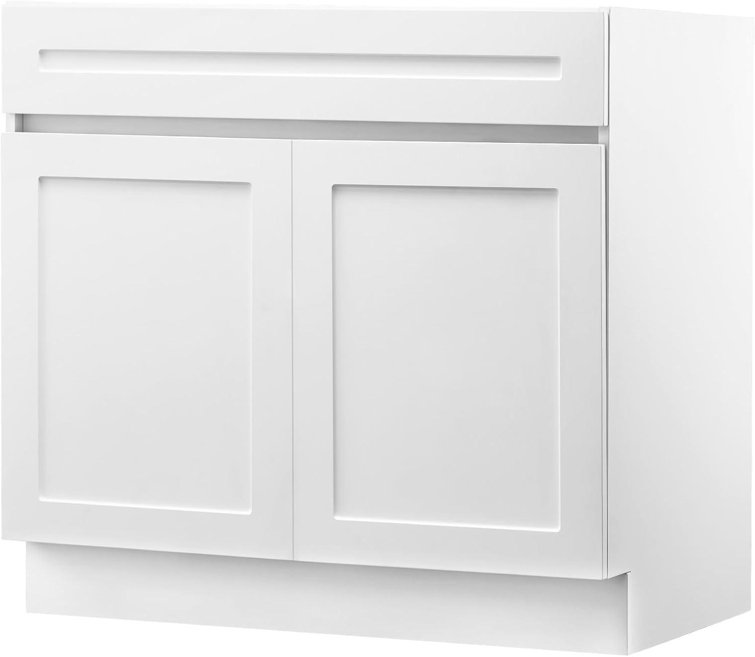 VEVOR White Shaker Base Cabinet with Drawer, 36-Inch Unassembled Drawer Base Cabinet, 36″ W x 24″ D x 34.5″ H Ready to Assemble Cabinet with Soft-Close Doors and Adjustable Shelf, for Home Office(30″W Sink Base Cabinet)