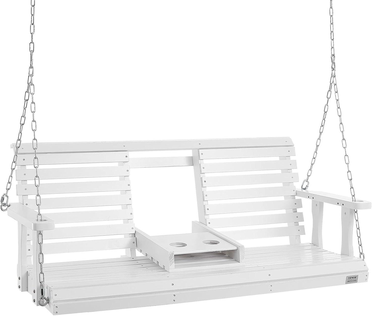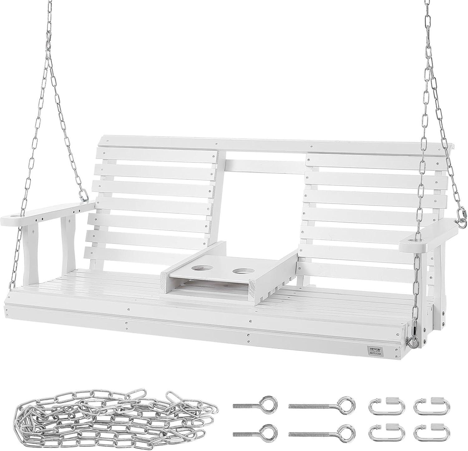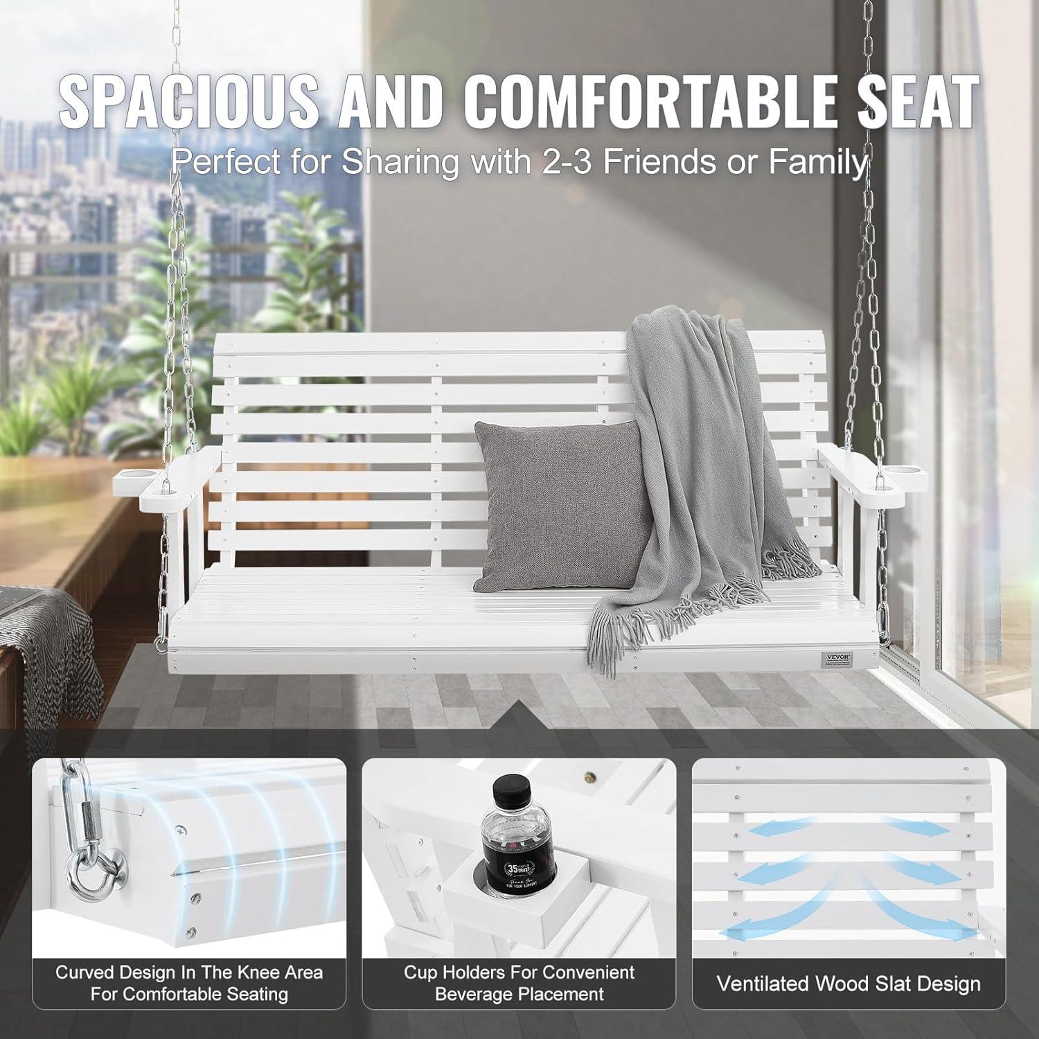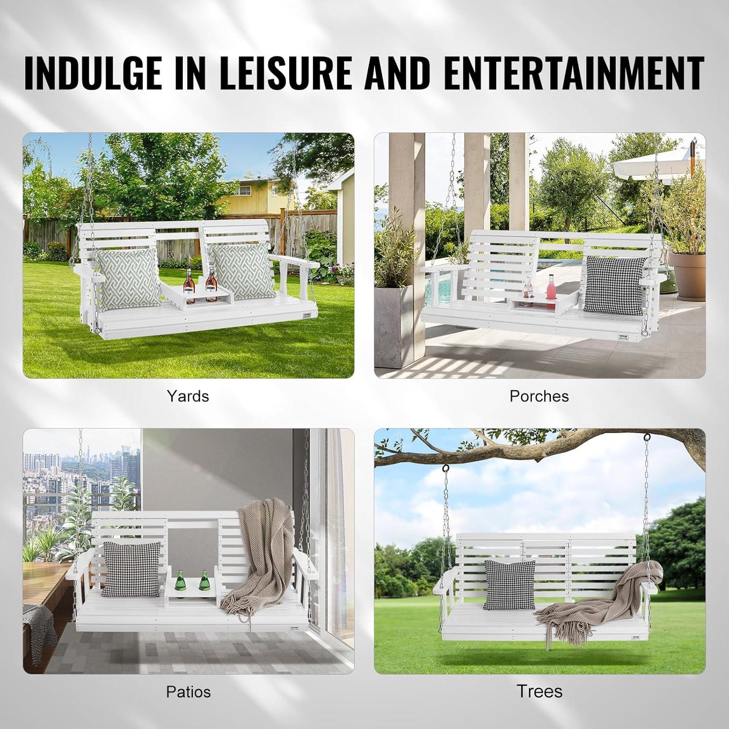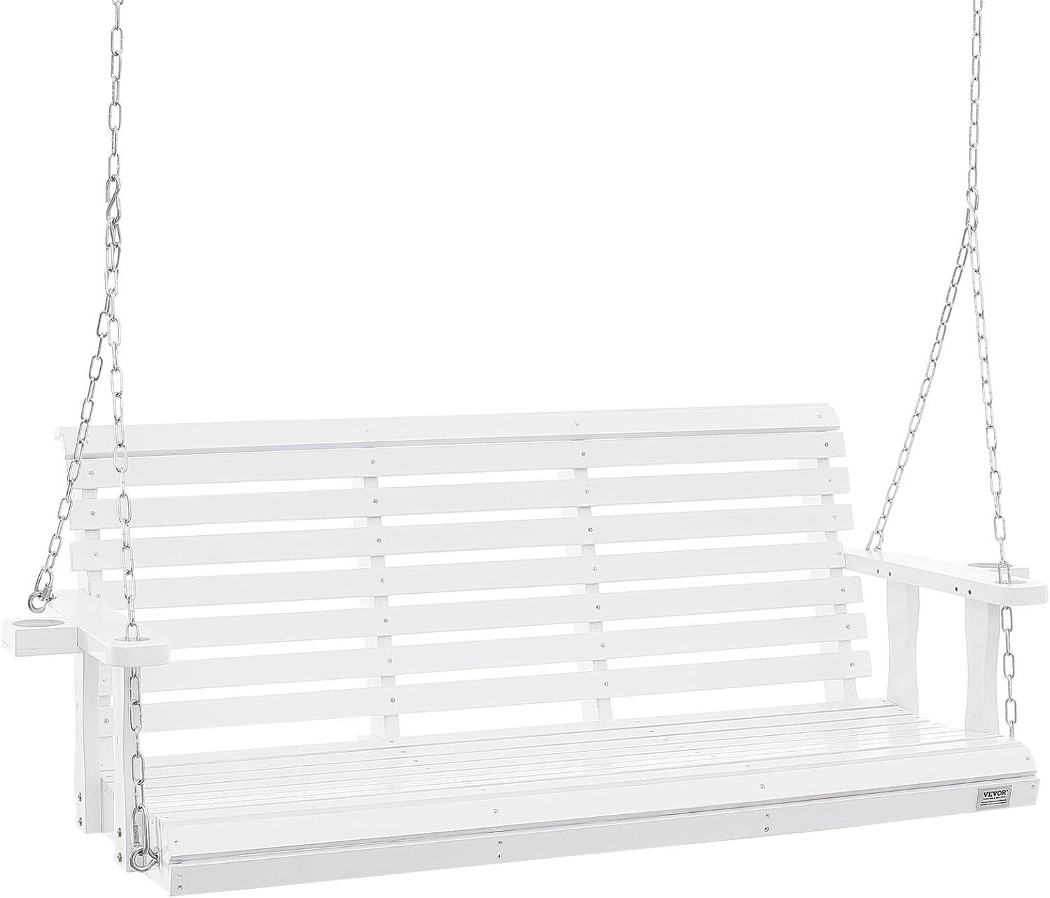 Comfortable Enjoyment: Our porch swing features ergonomic design with a reclined backrest for knee relief. It also includes cup holders on both sides for convenience. Adjustable steel chains allow you to customize the swing angle, while the safety lock ensures stability and peace of mind. Relax in comfort and style.