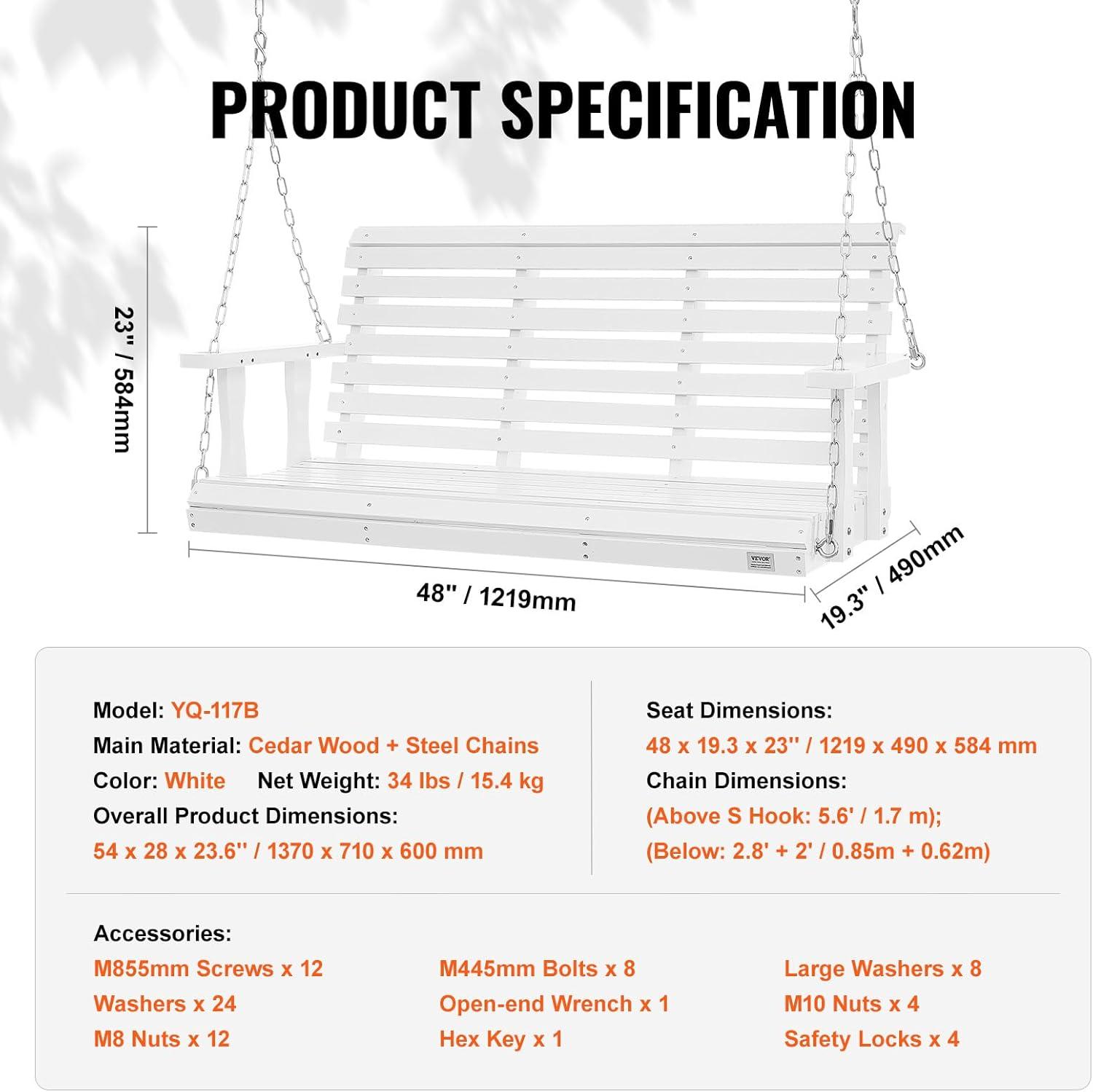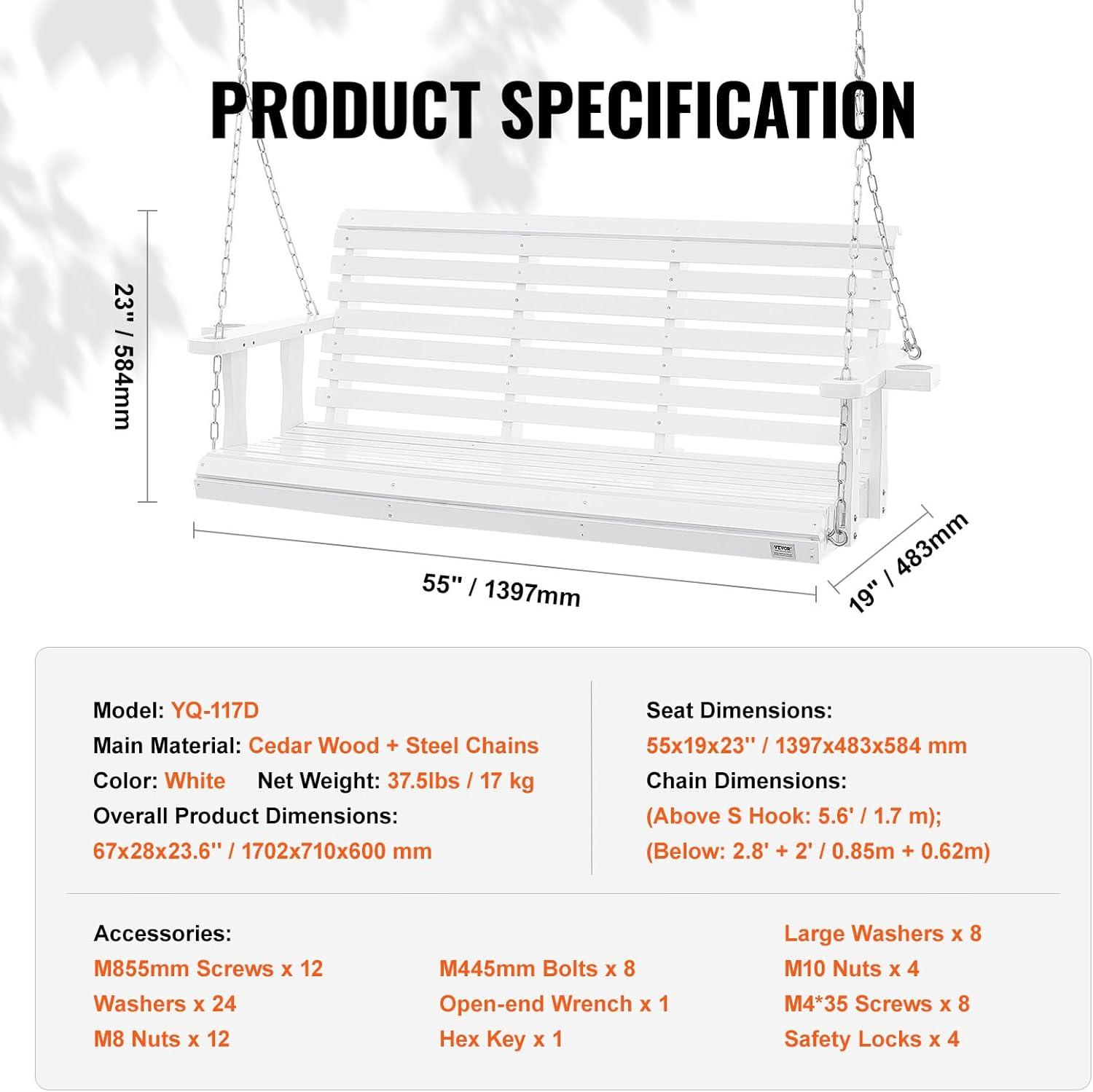 Classic Design: The timeless combination of solid wood and metal chains adds a touch of retro charm to your porch swing. Overall dimensions: 67x28x23.6''/1702x710x600 mm; seat dimensions: 55x19x23''/1397x483x584mm, comfortably accommodating 2-3 people.