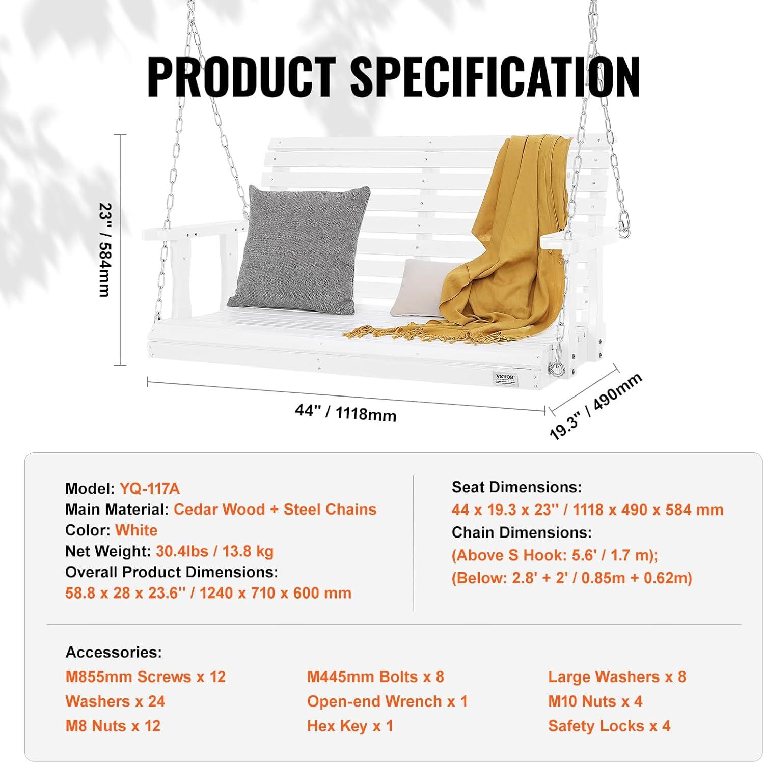 Sturdy & Stable: Crafted from pure fir wood and supported by galvanized steel chains, our porch swing ensures durability and stability. With a weight capacity of up to 880 pounds, it's built to last and remains steady throughout use.