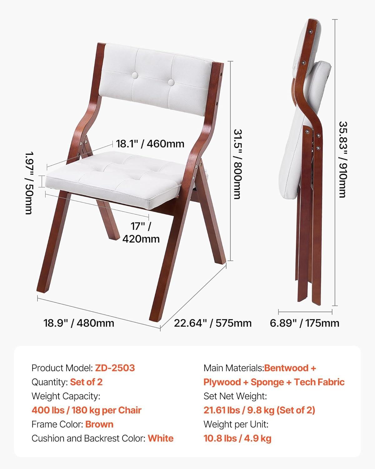 Reliable and Sturdy: The frame of the folding chair is made from high-quality bent wood, supporting up to 400 lbs / 180 kg. The anti-slip feet and triangular wood frame provide excellent stability and avoid tipping