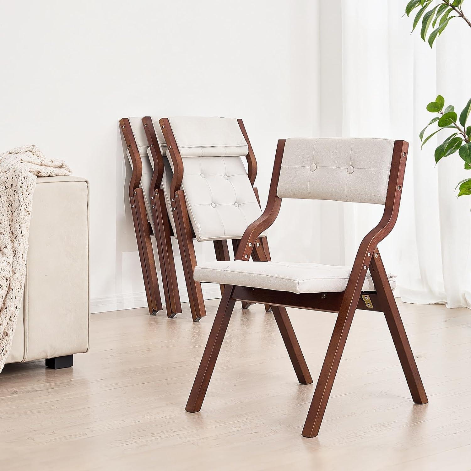 imageVEVOR Wooden Folding Chairs with Leather Cushion Set of 2 Portable Foldable Cushion Chair with Wooden Frame Easy Assembly Modern Leather Padded Dining Chair for Office Wedding Party Home BlackWalnutbeige