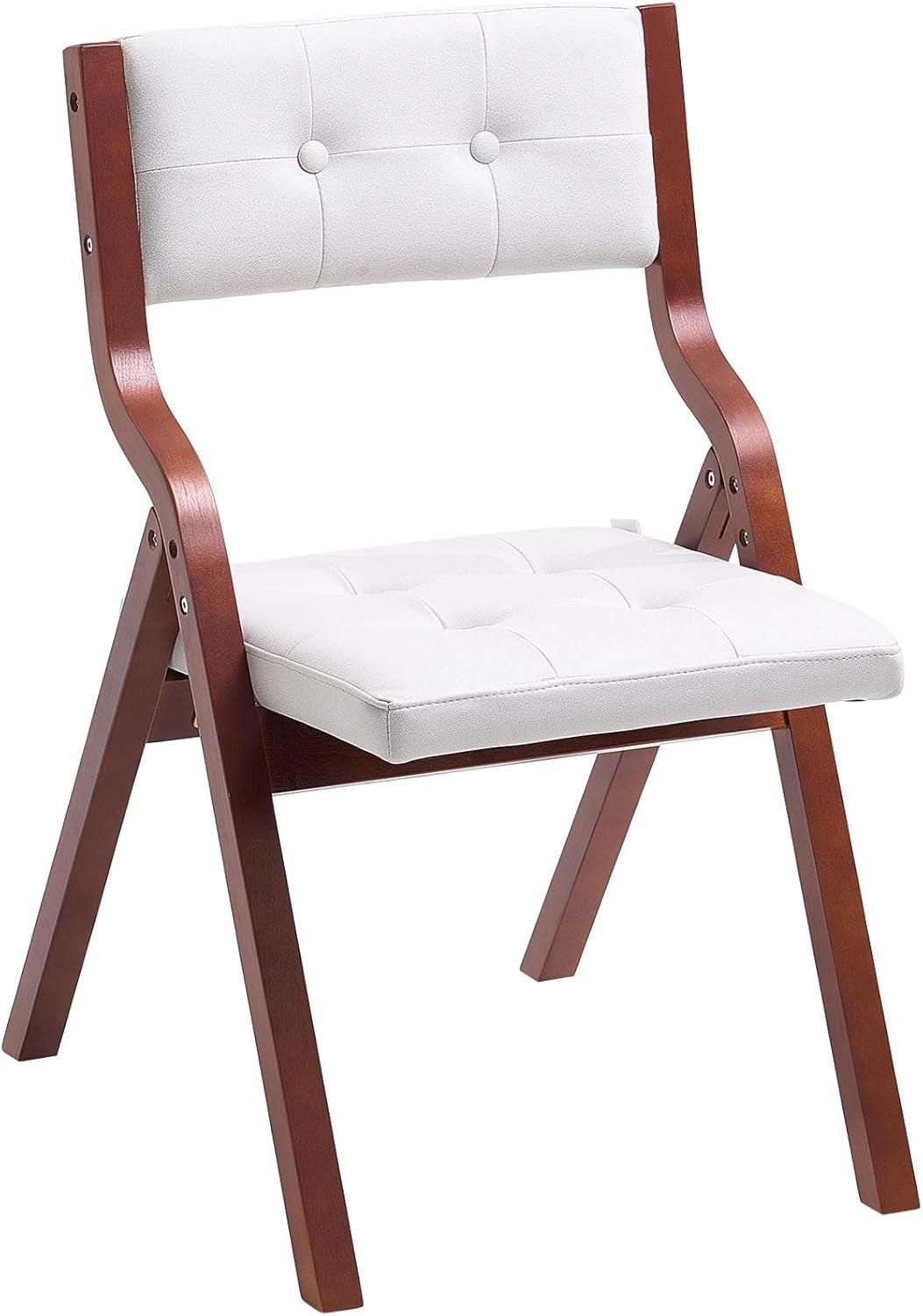 VEVOR Wooden Folding Chairs with Leather Cushion, Set of 2, Portable Foldable Cushion Chair with Wooden Frame, Easy Assembly, Modern Leather Padded Dining Chair for Office, Wedding, Party, Home, Black(Walnut+beige)