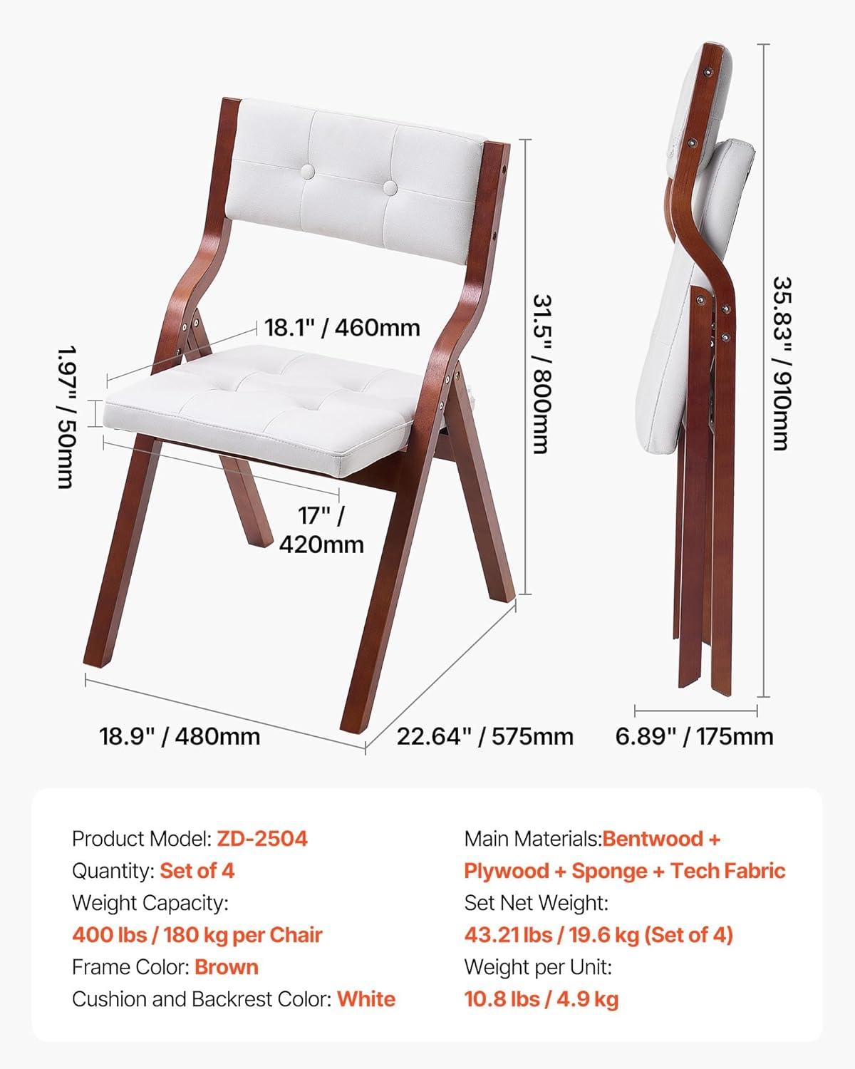 Extra-Large Seat Cushion: The oversized seat of the dining folding chairs provide unmatched comfort and extra space. It accommodates various body types, providing the most comfortable sitting posture