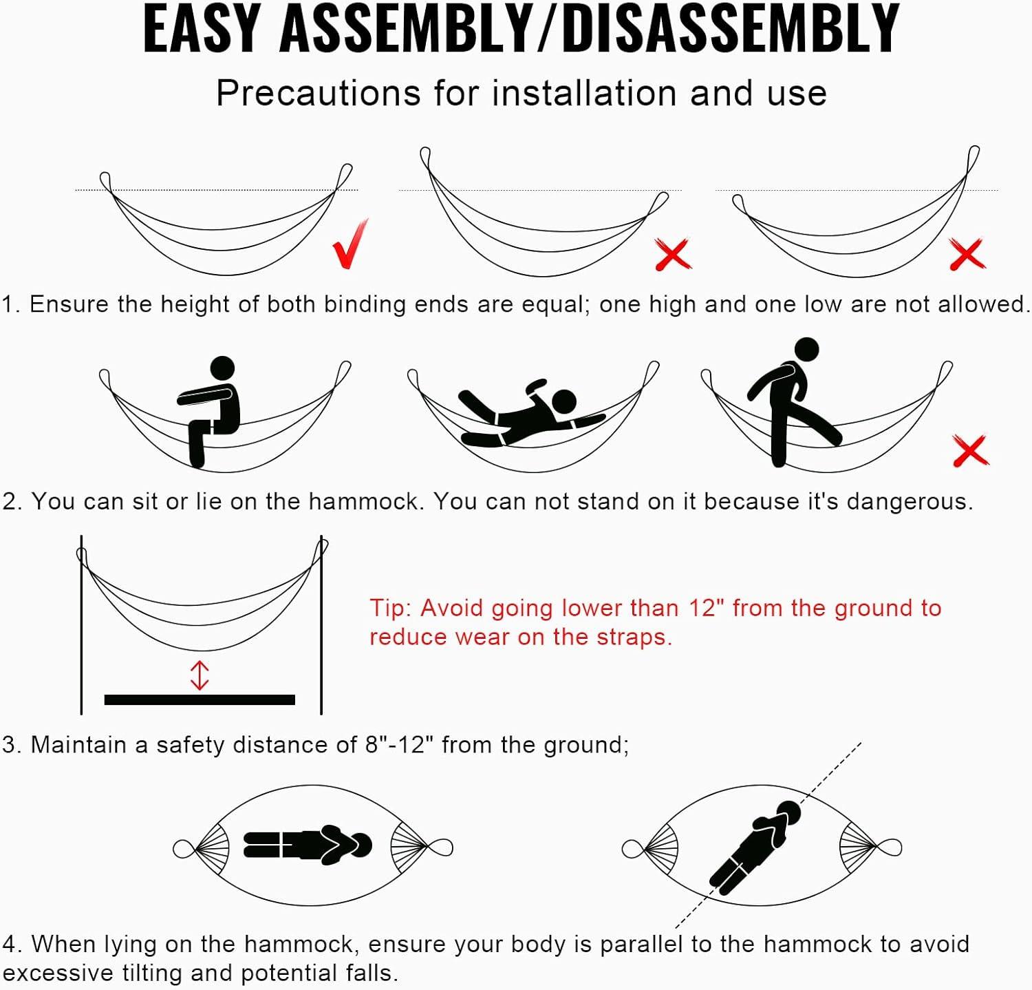 Easy Installation: Complete with all necessary fittings for a quick and easy setup. Simply tighten the screws to assemble, and with detailed instructions and a parts list included, you can effortlessly put together your stand for hammock, saving time and effort while enjoying immediate hammock comfort.