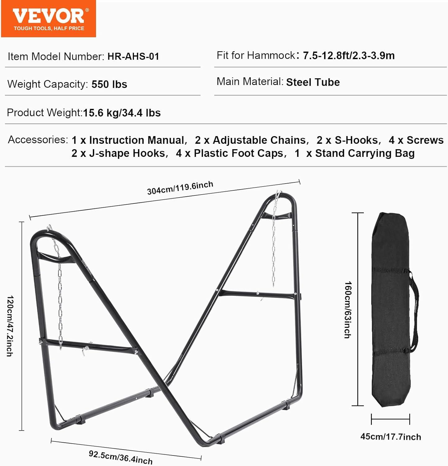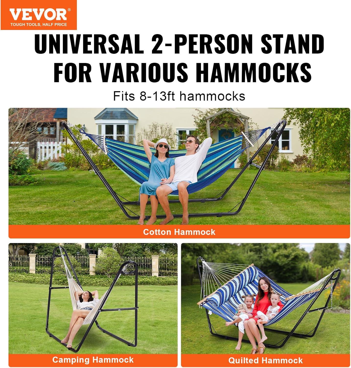 VEVOR Wooden Hammock Stand, 475 lbs Capacity Universal 2 Person Hammock Frame Fits 9-13 ft Hammocks, Larch Wood Arc Adjustable Stand for Hammock with Chain and Carabiner, for Outdoor and Indoor(Portable)