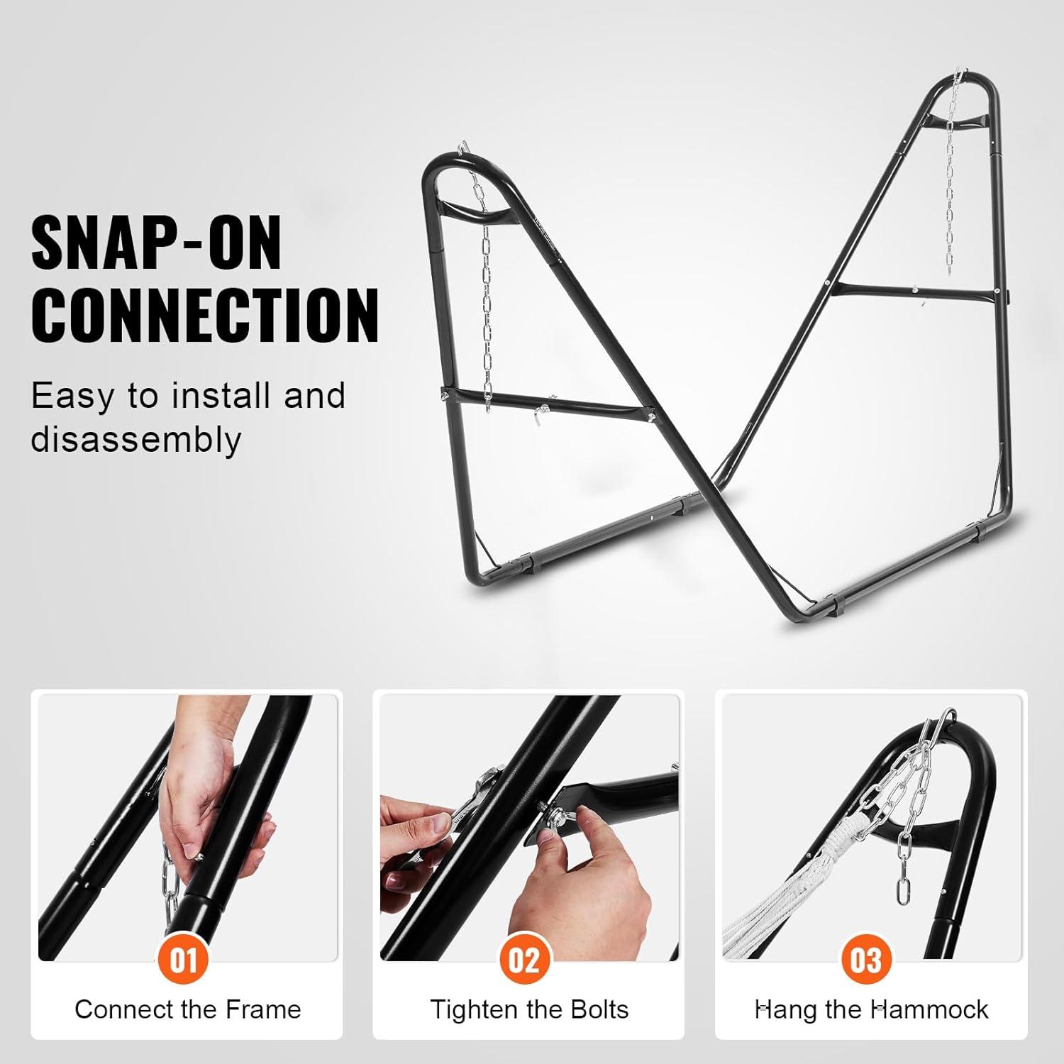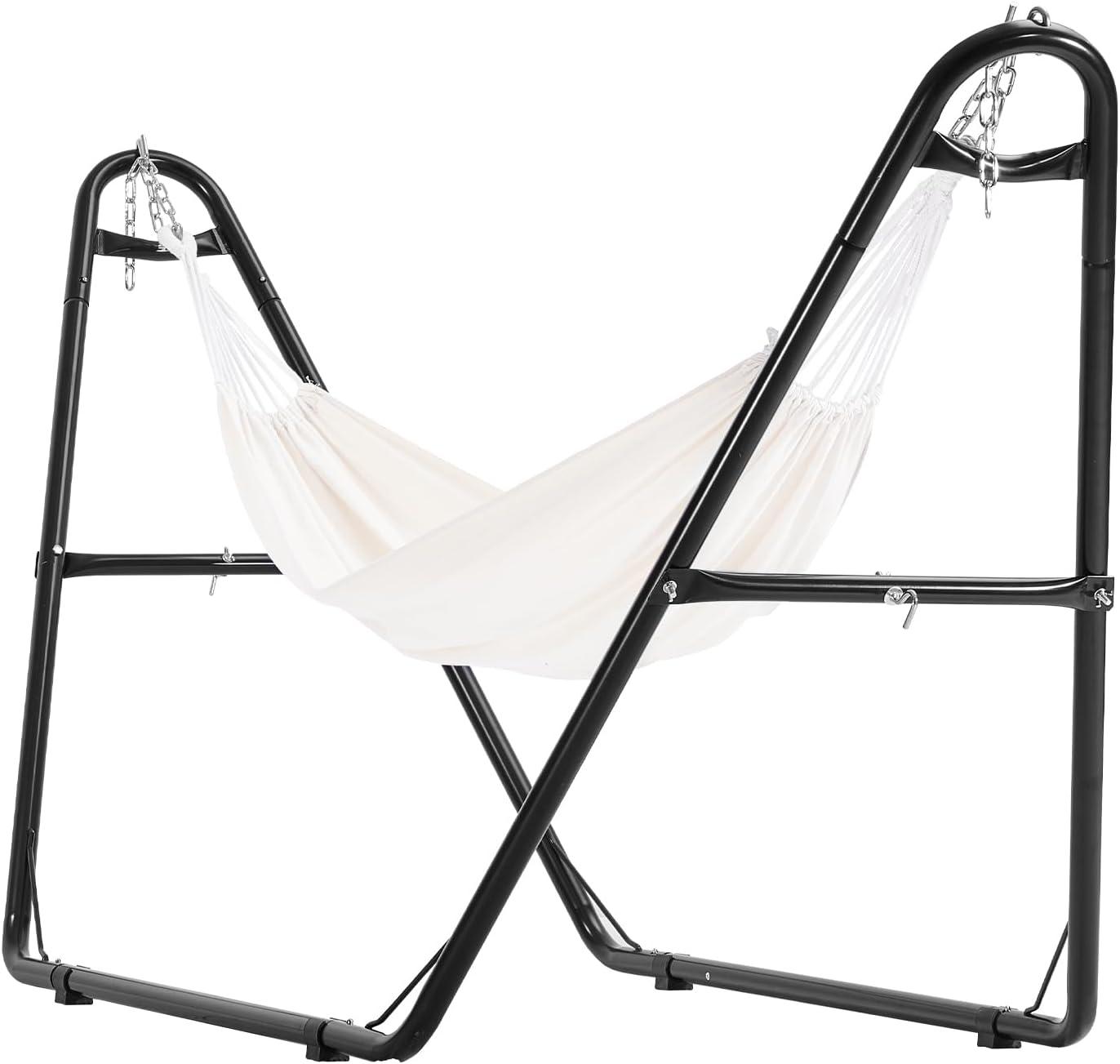 Adjustable Convenience: Designed for flexibility, this hammock frame features carabiners and chain adjustments, allowing you to easily modify the height and angle of your hammock. Whether sitting or lying down, find your perfect comfort position for daily naps or open-air picnics.