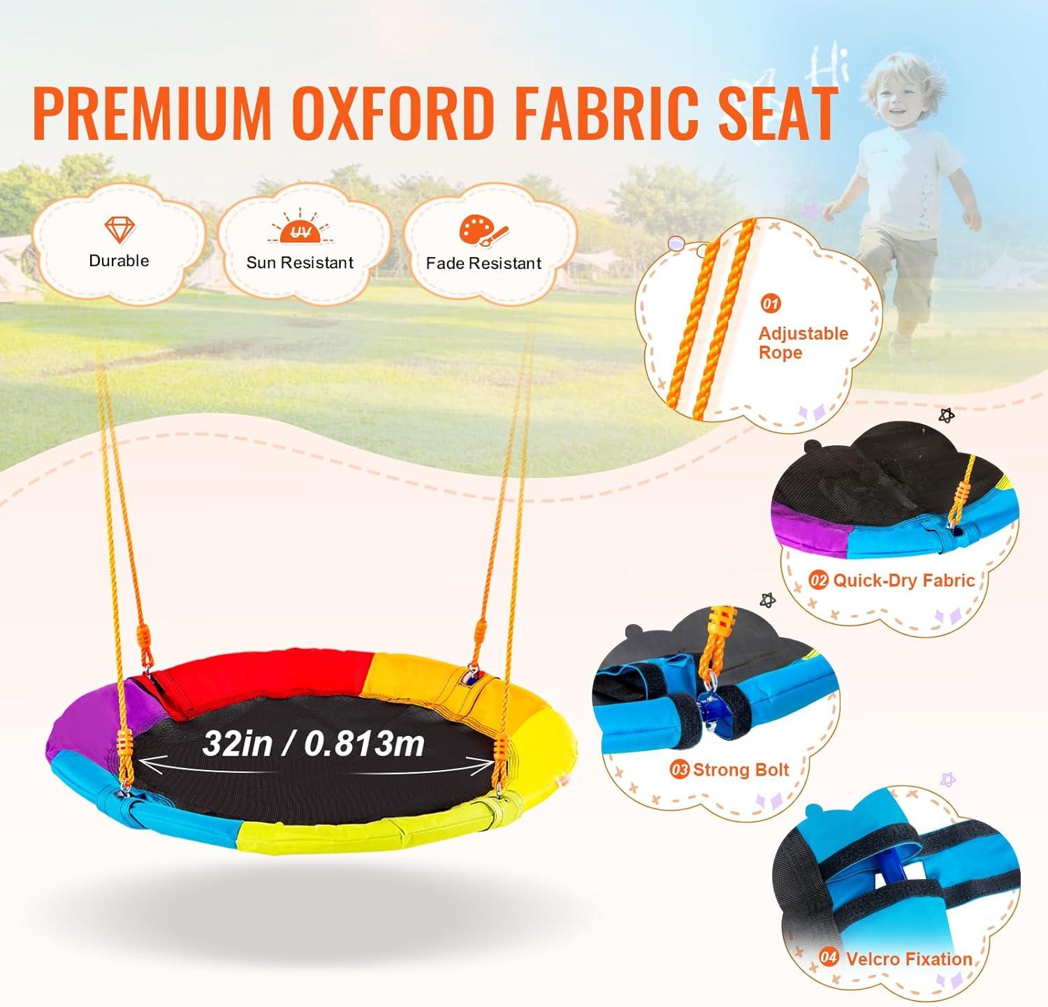 Durable & Strong: Crafted from premium cedar wood, reinforced with high-quality plastic (PP&PE) and steel, our outdoor playset is built to last. The wood surfaces are treated with outdoor water-based paint, making them weather-proof and secure with no burrs or scratches.