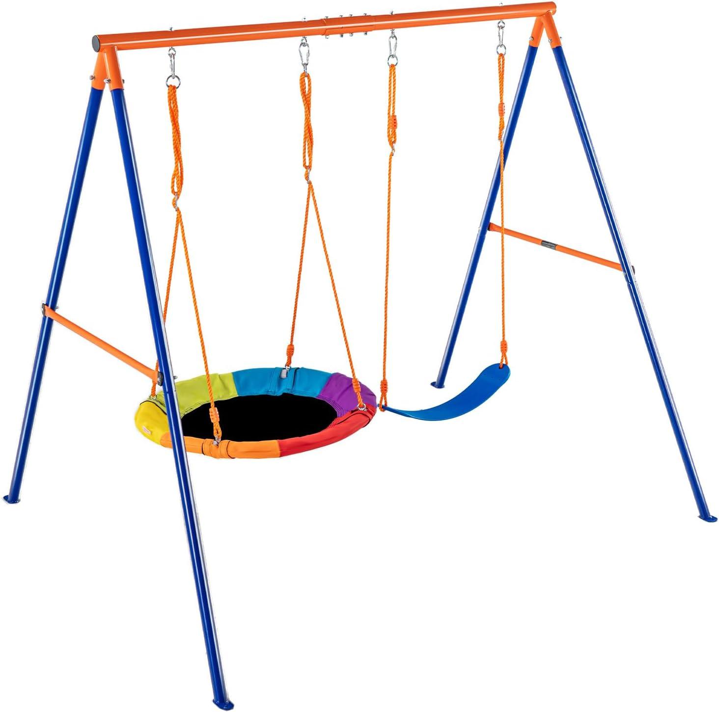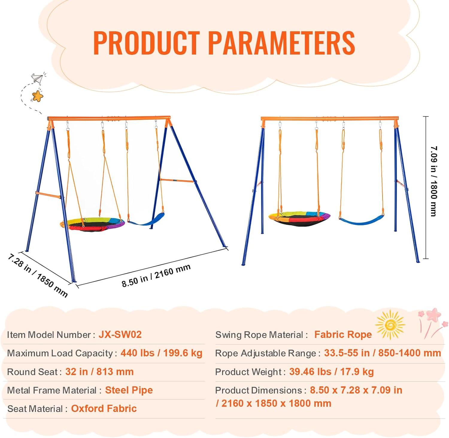 Outdoor Fun: Designed for children aged 3-10, this swing set is the perfect gift to inspire outdoor play and physical activity. It comes with pre-bored holes for easy setup. Note: The swing set will be delivered in 3 packages. We appreciate your patience in waiting for all parts to arrive to complete your installation.