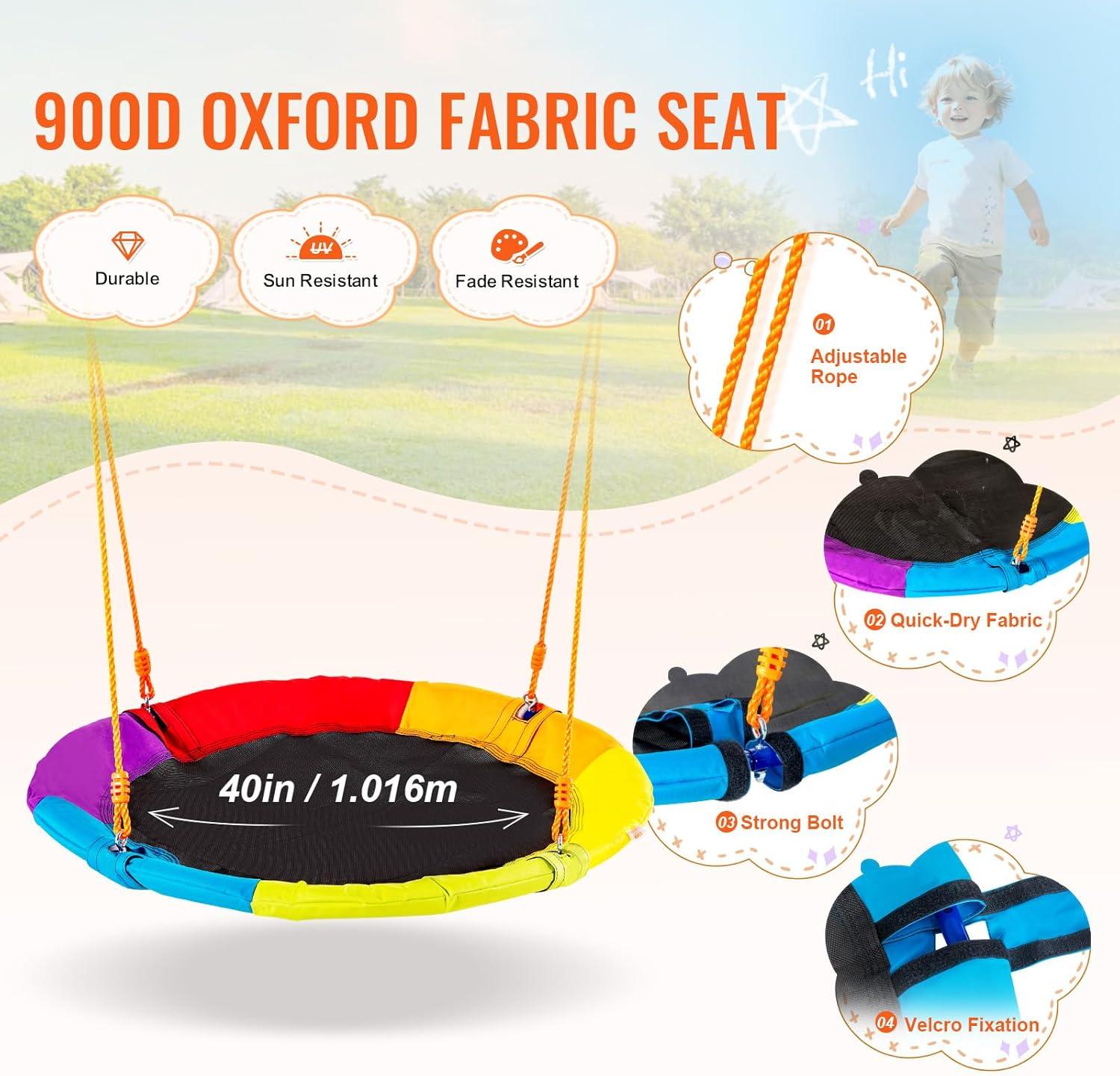 imageVEVOR Wooden Swing Set 10 in 1 Playground Sets for Backyards 2 Swings 6FT Slide Trapeze Bar Flat Step LadderLarge Upper Fort with Kitchen Toys Rock Wall Picnic Table Sandbox Scaling Ladder900D Fabric 1Seat