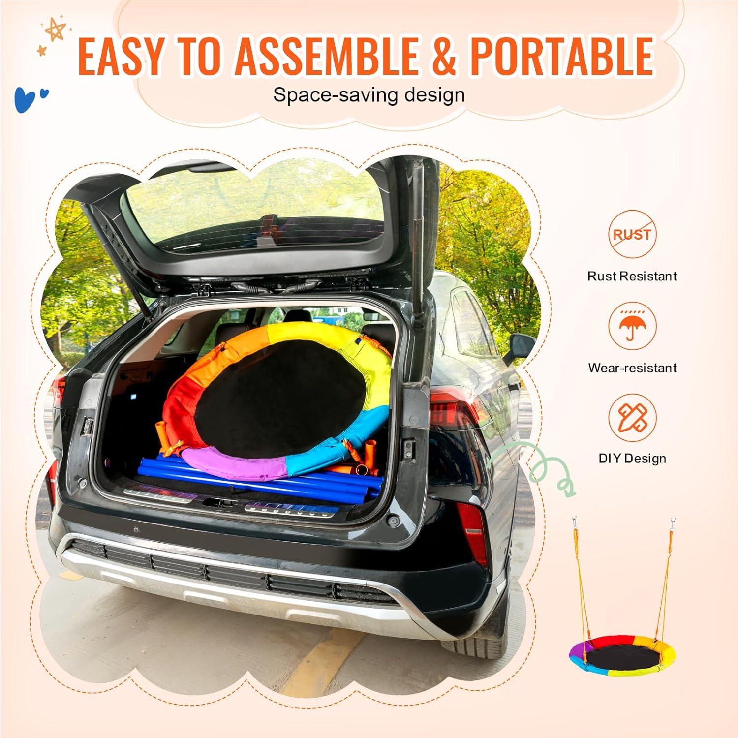 Outdoor Fun: Designed for children aged 3-10, this swing set is the perfect gift to inspire outdoor play and physical activity. It comes with pre-bored holes for easy setup. Note: The swing set will be delivered in 3 packages. We appreciate your patience in waiting for all parts to arrive to complete your installation.