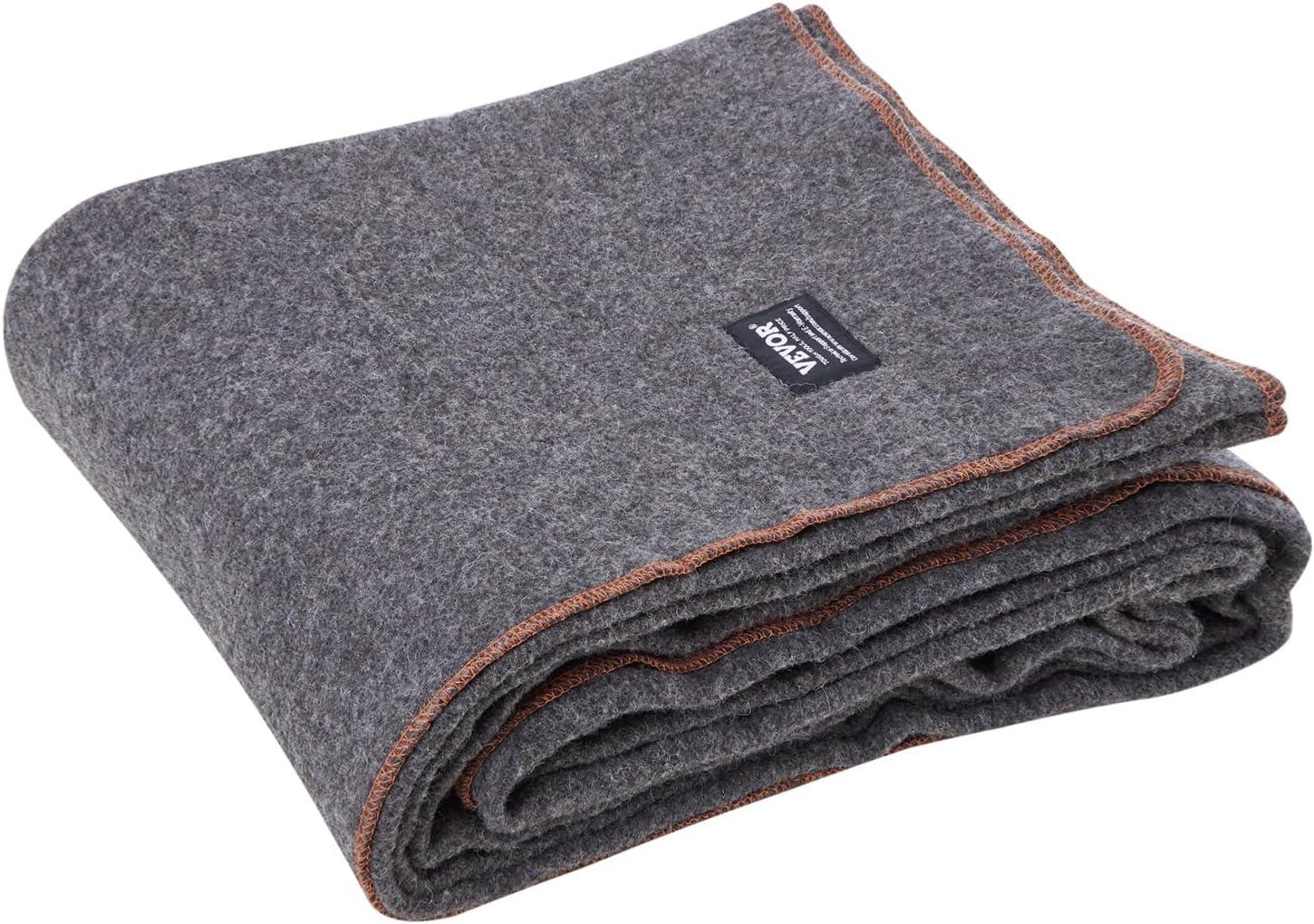 VEVOR Wool Camping Blanket, Large Warm Stadium Blanket, Flame Retardant, Great for Outdoors, Picnics, Hiking, Sports Events, Travel, Car & Bushcraft Survival Kits, 64" x 88", Striped Throw Blanket(Grey)