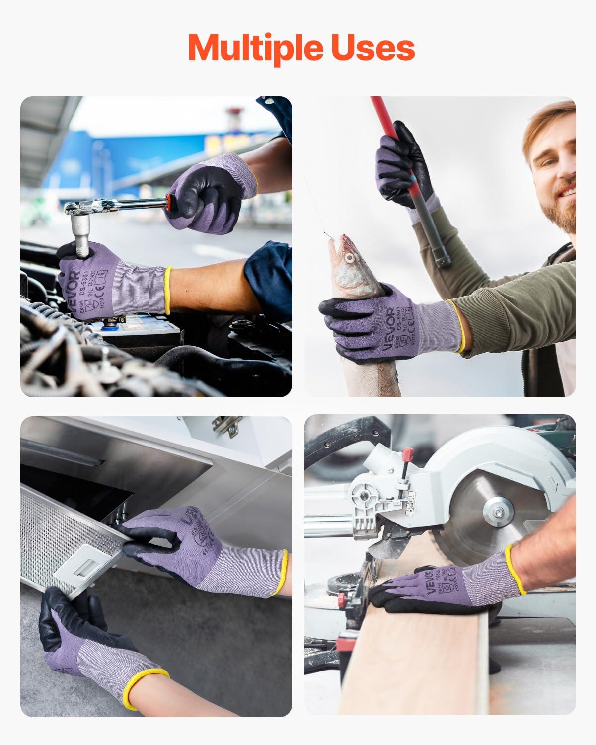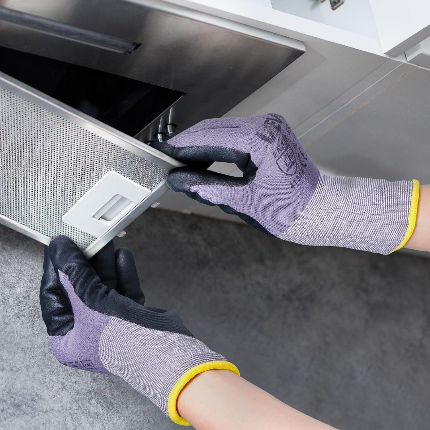 Anti-Slip and Durable: The work gloves with micro-foamed nitrile coating offers excellent grip and exceptional wear resistance, even when handling oily or slippery tools. These industrial gloves ensures your tools stay firmly in hand, making your work more secure and efficient.