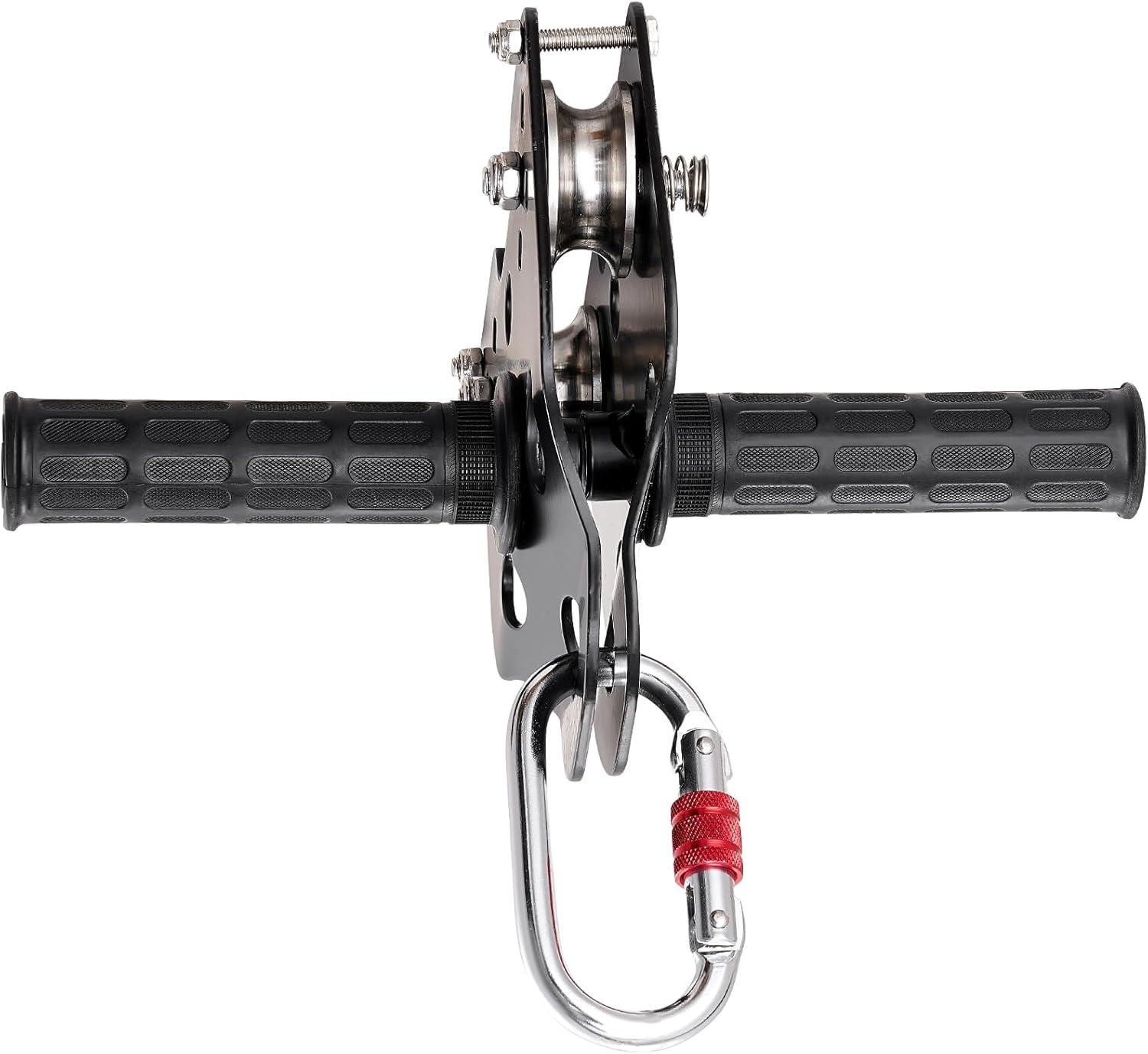 Extended Spring Brake System: The 6.4 ft extra-long spring brake, made of stainless steel with moderate hardness, offers higher resilience and durability. As a result, the high-altitude zip line won't come to a sudden stop. The spring brake system effectively maintains the distance between children and trees, ensuring safety.